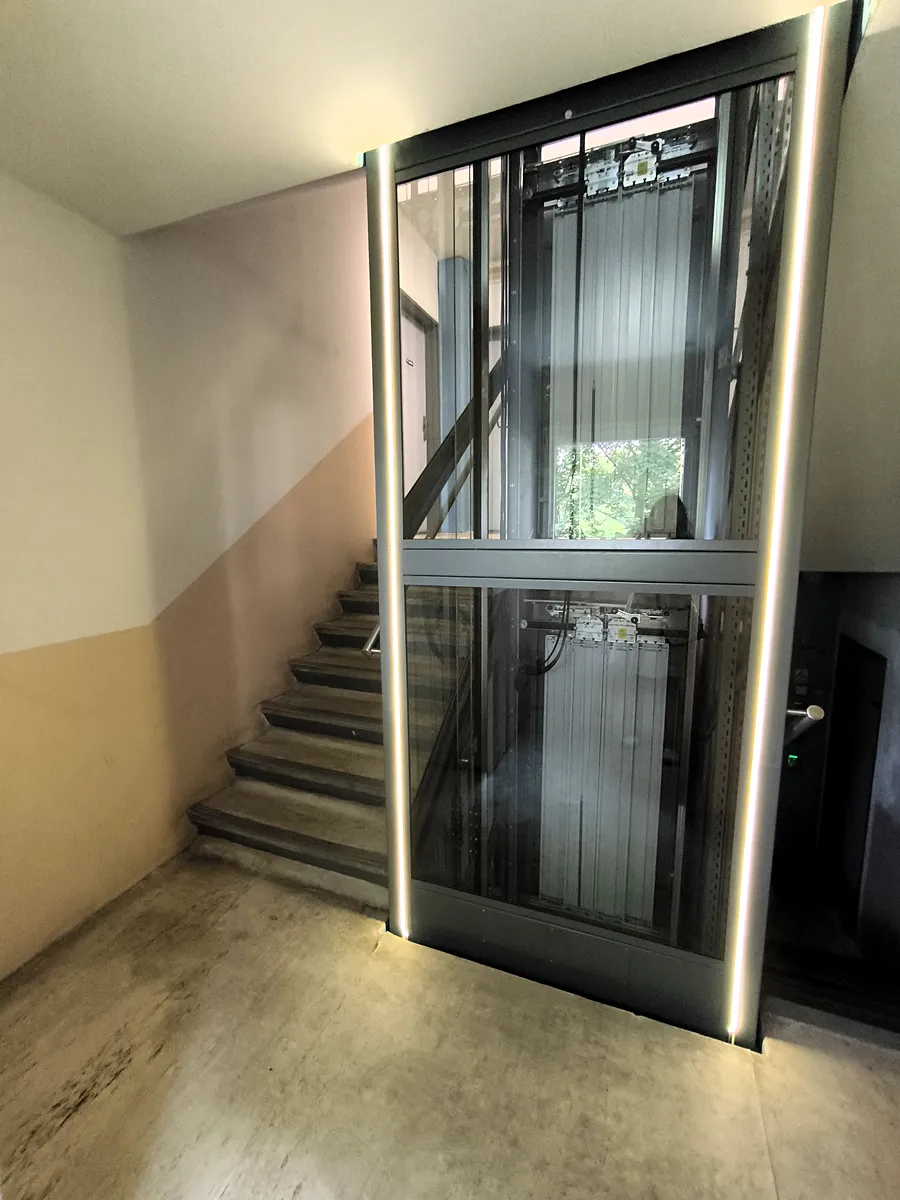 Noví majitele rozhodně ocení velký prosklený výtah, kam se bez potíží zajede s kočárkem, kolem, ale je i výborným pomocníkem při stěhování větších kusů do domácnosti. V současné době se upravují vnitřní společné prostory domu, vyměňují se vchodové dveře od bytů, schránky na poštu a pokládají se lina v celém domě.