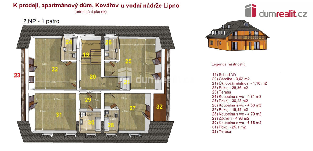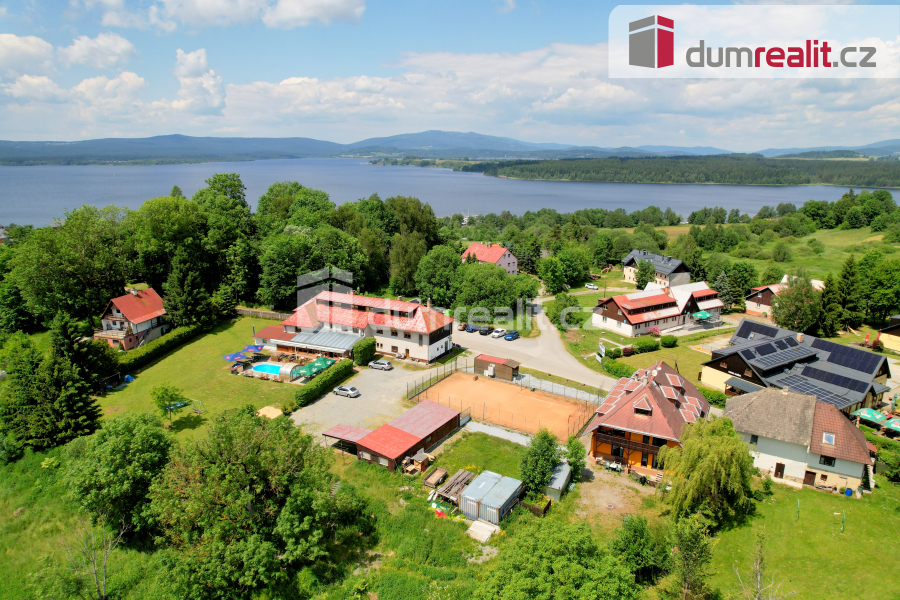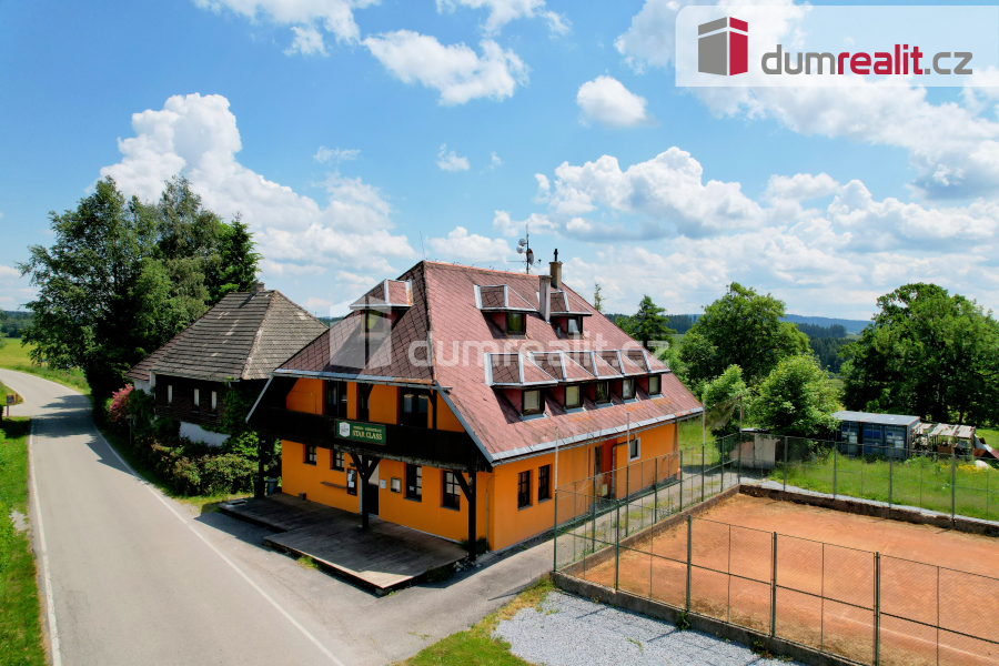 Dumrealit.cz Vám zprostředkuje prodej objektu s kuchyní, restaurací a 8 pokoji (4 apartmány + 2 pokoje s koupelnami) pro rodinnou rekreaci v obci Kovářov - Frymburk u vodní nádrže Lipno. Prodávaný objekt s pozemky naleznete na LV č. 2320 v kú Kovářov, obec Frymburk. Podrobné rozkreslení dispozice objektu naleznete na orientačním plánku mezi fotografiemi. Dům je zděný bez zateplení. Stropy jsou kombinované ŽB a dřevěné. Rozvody vody a kanalizace jsou plastové. Vytápění a ohřev teplé vody je řešen plynovým kotlem, nádrž na plyn je zakopaná v zemi za domem na pozemku. Elektřina je částečně v mědi. Objekt je připojen na veřejný vodovod a obecní kanalizaci. Okna jsou téměř všechna plastová s dvojskly. K dispozici máme pasportizaci stavby, projektovou dokumentaci na přestavbu domu, kompletní zákres inženýrských sítí, územně plánovací informaci s možnostmi využití zástavby na pozemku. Možnost koupě objektu s pozemky jako firmu za zvýhodněnou cenu. Doporučuji prohlídku, objekt je vhodný k podnikatelskému záměru. Zajistíme Vám financování a veškerý právní servis, popř. architekta a doporučíme stavební firmu. Více informací Vám poskytne realitní makléř Tomáš Pelda z realitní kanceláře A TEMPO fungující pod ochrannou známkou dumrealit.cz.. Ev. číslo: 652662.