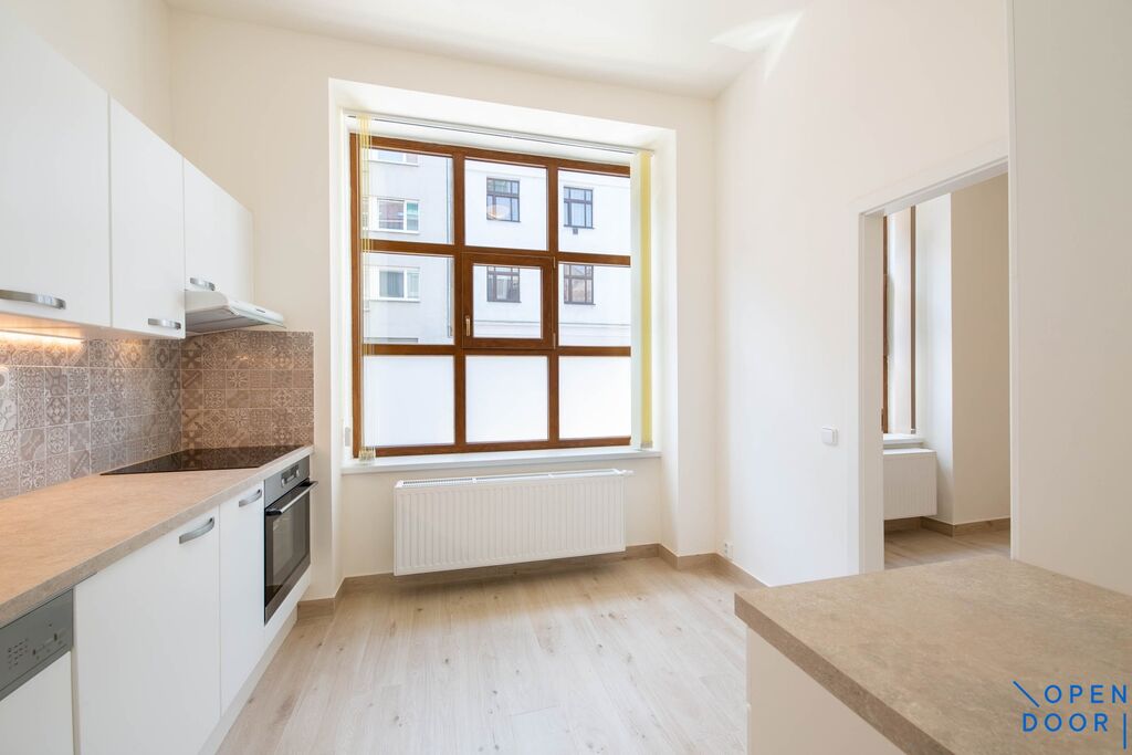 Pronájem moderního nového bytu o dispozici 1 + 1, cca 28 m2 v přízemí stylového bytového domu v ulici Kurta Konráda, v Praze 9 Libni.