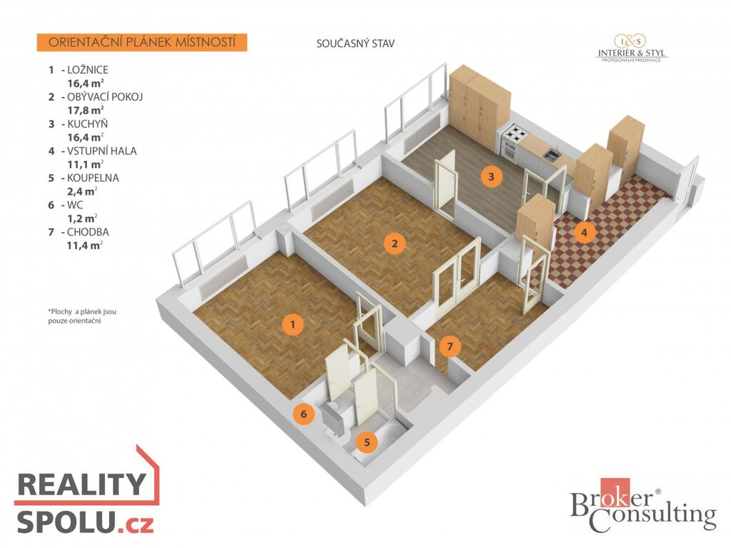 Byt je před rekonstrukcí, což nabízí ideální příležitost k vytvoření domova podle vlastních představ - pro inspiraci v náhledu fotografií několik vizualizací jak by byt mohl vypadat.