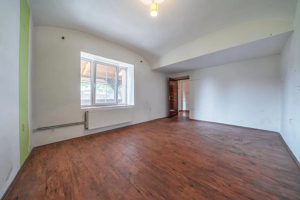 V našem osobním vlastnictví nabízíme k prodeji rodinný dům se zahradou v centru obce Krchleby okresu Kutná Hora. Dispozice domu je v současném stavu 2+kk + koupelna (100 m2), dílnou 67 m2 a garáží 27 m2, která lze přetvořit např. na 5+kk viz. návrh půdorysu v inzerci. Pro rozšíření bydlení je také možné využít podkroví o užitné ploše 190 m2. Dům leží na pozemku o celkové výměře 752 m2 z čehož je 276.6 m² zastavěné plochy.