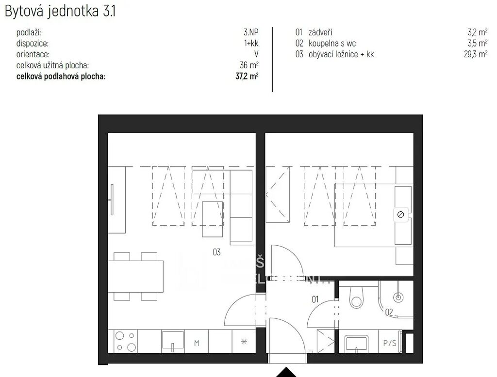 Nabízíme k pronájmu moderní a útulný byt 2+kk o podlahové ploše 37 m², který se nachází ve 3. nadzemním podlaží s orientací na západ. Hledáme dlouhodobého nájemníka (nekuřák, bez exekucí).