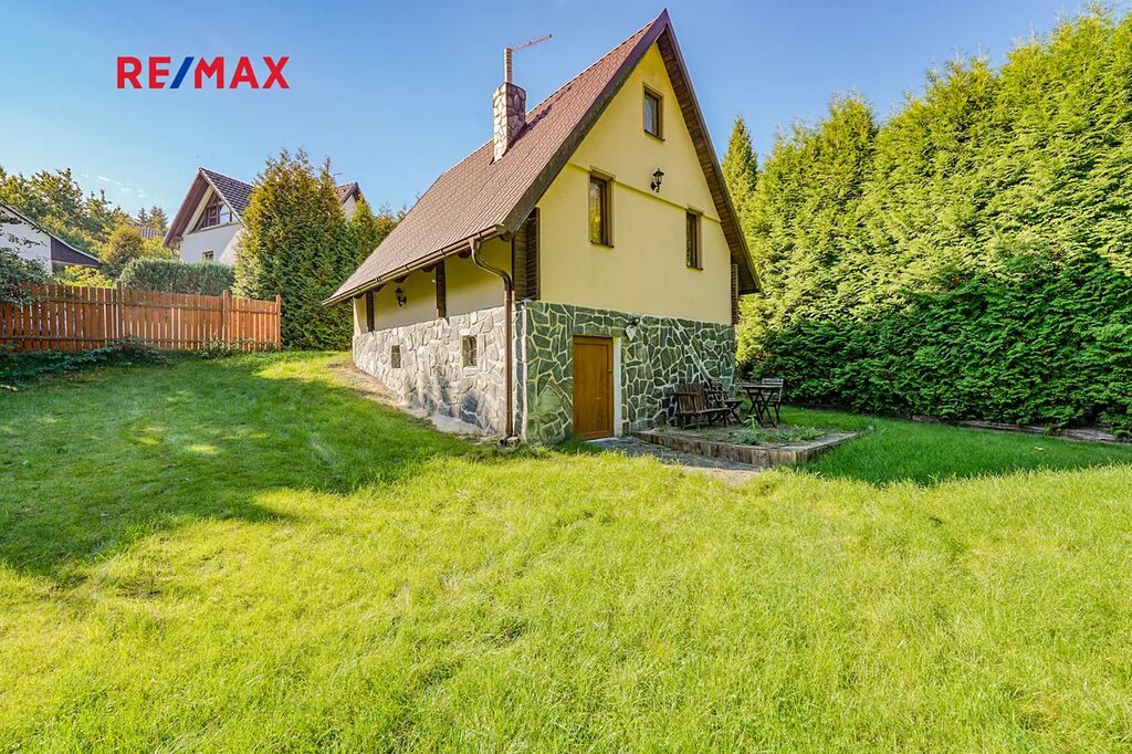 Dům je rozdělen do tří podlaží, v 1. podlaží se nachází vstupní chodba a místnost kterou lze využít například jako dětský pokoj. Ve 2. podlaží se nachází obývací pokoj s krbem, kuchyní a koupelnou se sociálním zázemím. Ve 3. podlaží nalezneme další pokoj který lze využít například jako dětský pokoj, ložnici a nebo pracovnu. Dále je na zahradě k dispozici polozapuštěný bazén a domek pro zahradní náčiní. Díky vysokým vzrostlým stromům po obvodu pozemku nabízí zahrada dostatek klidu a soukromí. Dům prošel 10 let zpět kompletní rekonstrukcí včetně zateplení, je vybaven plastovými okny s dvojskly, elektroinstalací kompletně v mědi, plovoucími podlahy a střechou z plechové taškové krytiny. Vytápění je zde řešeno pomocí krbu a ohřev vody pomocí elektro bojleru.