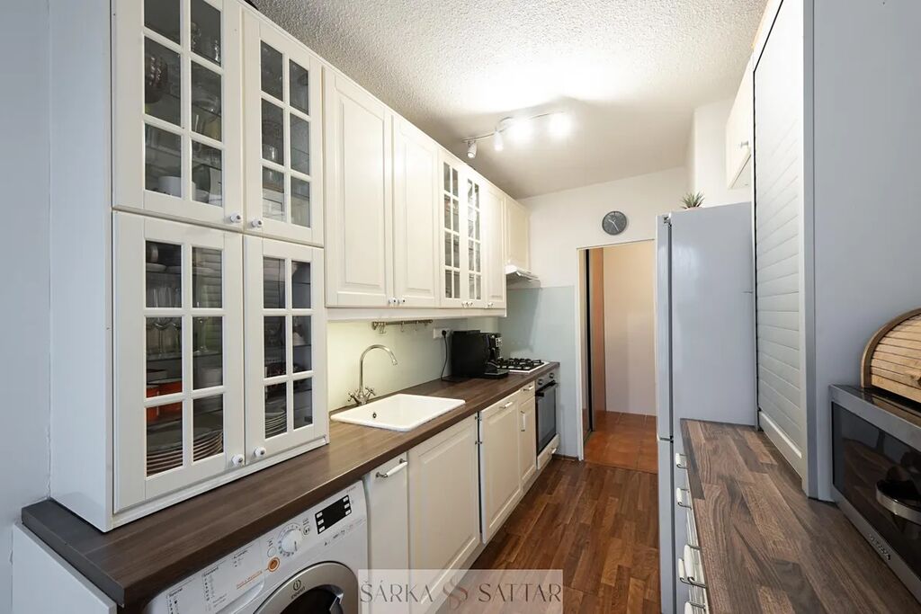 Tento částečně zrekonstruovaný byt má prostorný obývací pokoj 19m2 se vstupem na lodžii, dále samostatnou kuchyň 11m2 el.trouba, plynová varná deska, lednice, mrazák, myčka, digestoř, pračka. Obývací pokoj a kuchyň je možné propojit. Ložnice (13m2 a 12m2) jsou orientovány na klidnou stranu s výhledem do zeleně a směrem nádrž Petrovice. Koupelna má vanu, umyvadlo a je po rekonstrukci stejně jako toaleta. Na předsíni jsou prostorné vestavěné skříně.
