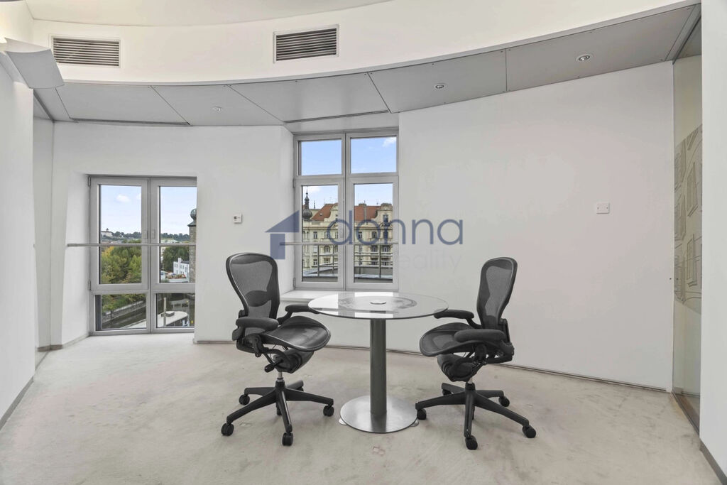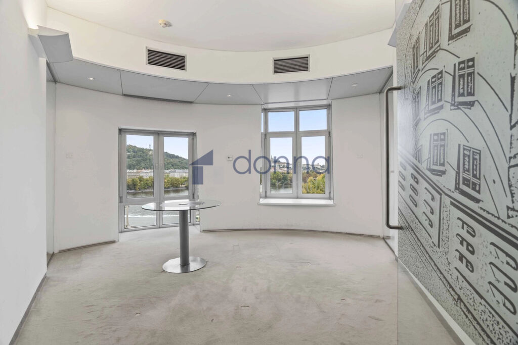 Jedna se o kancelářské prostory se soukromým balkonem v 6. nadzemním podlaží, kancelář nabízí výjimečný výhled na Vltavu a panorama Pražského hradu. V budově je 24 hod. recepce, výtah, možnost pronájmu zasedací místnosti. Dům nabízí možnost využití terasy s krásným výhledem na Pražský hrad a Vltavu, dále také restauraci či bar v posledním patře s jedinečným výhledem. Poloha zaručuje efektivní dopravní spojení na hlavní silnice a dálnice ve všech směrech - Pražský městský okruh, D1, D5 a D8 a současně přístup k městské hromadné dopravě jako je metro B Karlovo náměstí a tramvajové linky Jiráskovo náměstí, Palackého náměstí a Karlovo náměstí. Lokalita je velice žádaná a velice lukrativní a strategická pro schůzky, či návštěvy Vašich klientů. Parkování v okolí budovy. Ihned volné. Neplatíte provizi !
