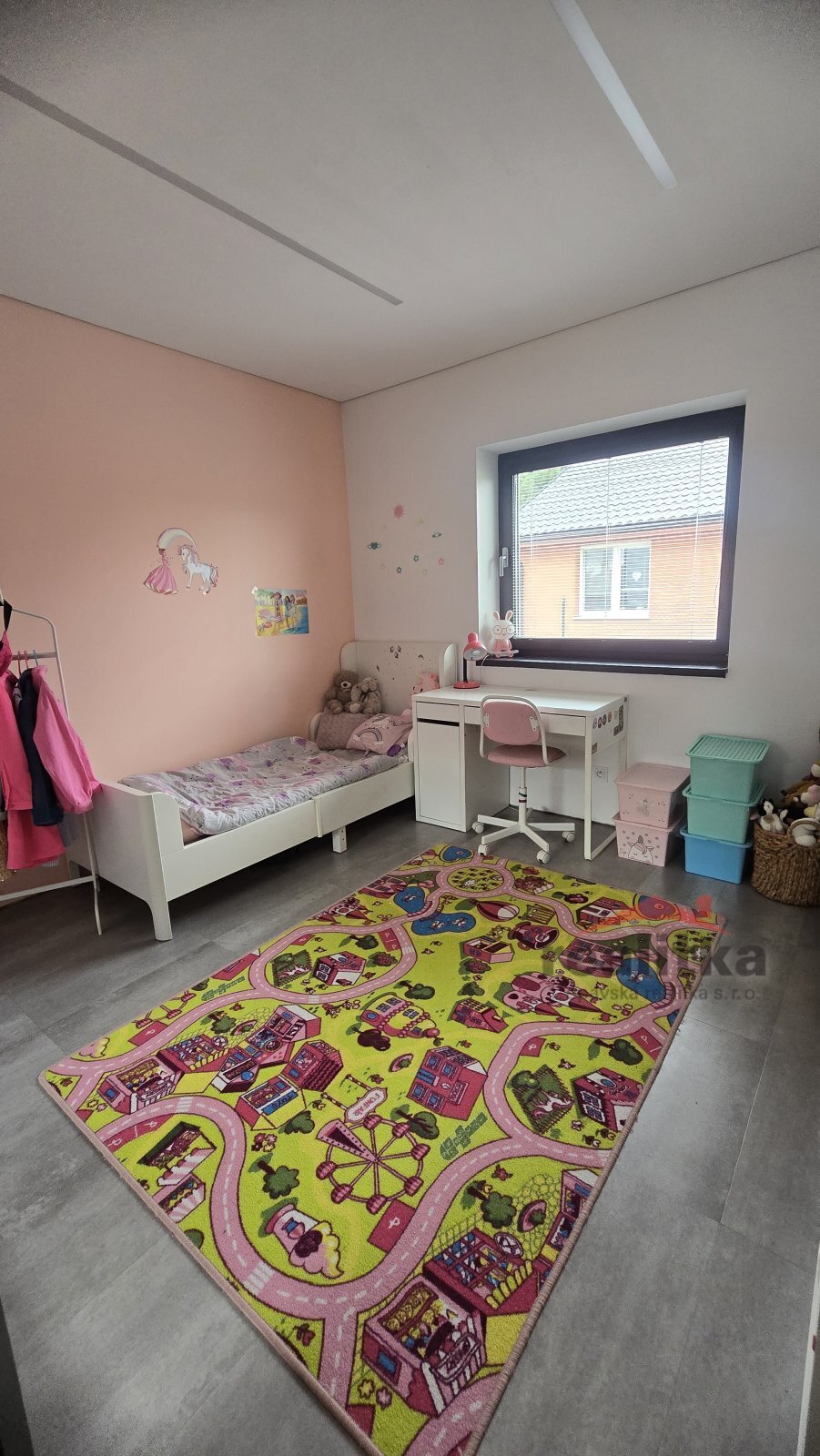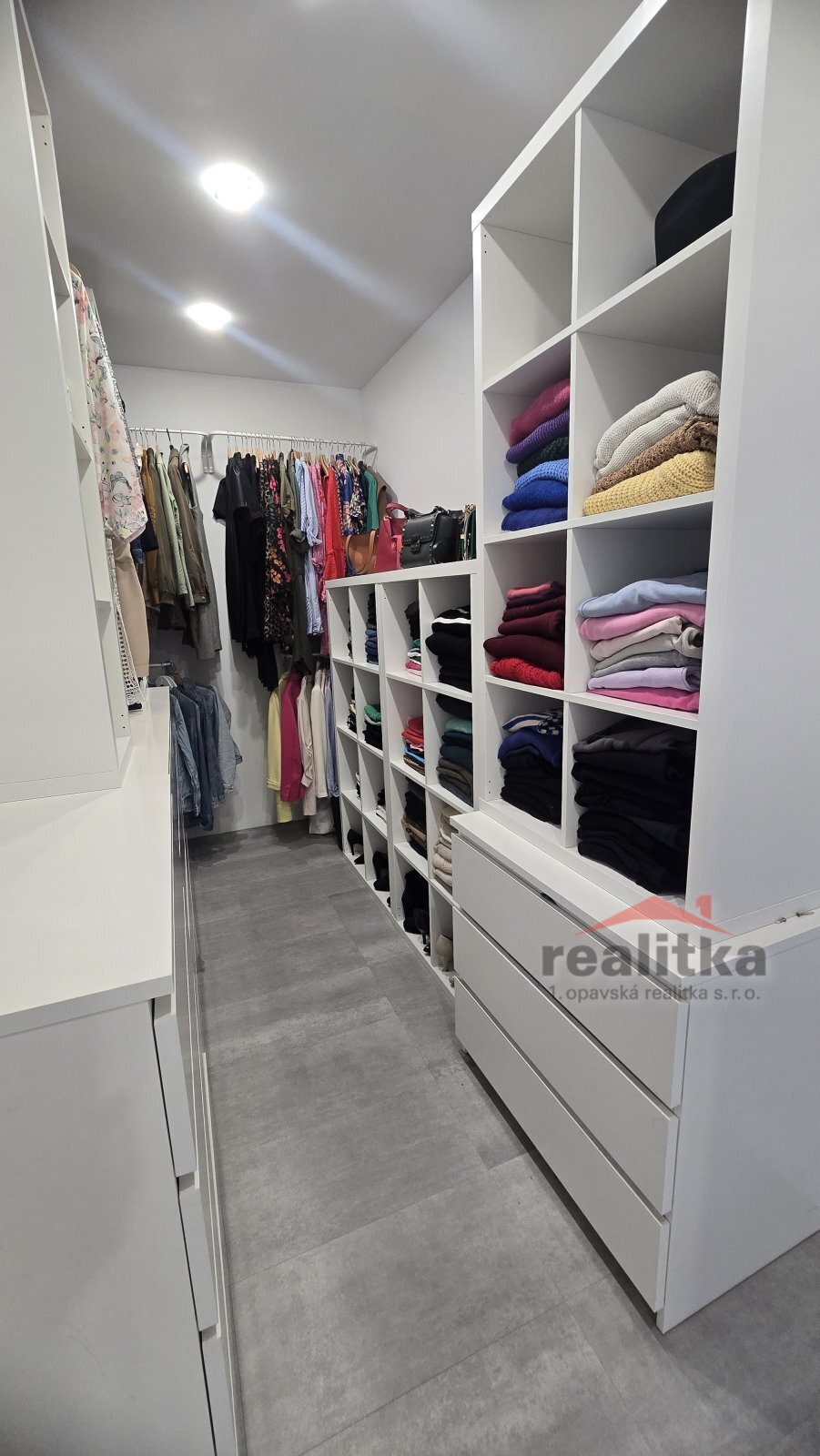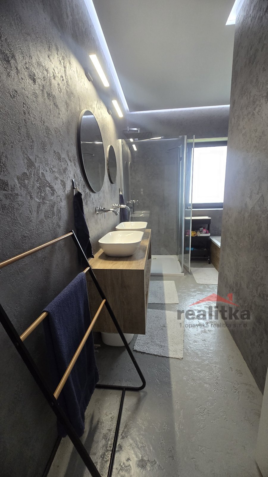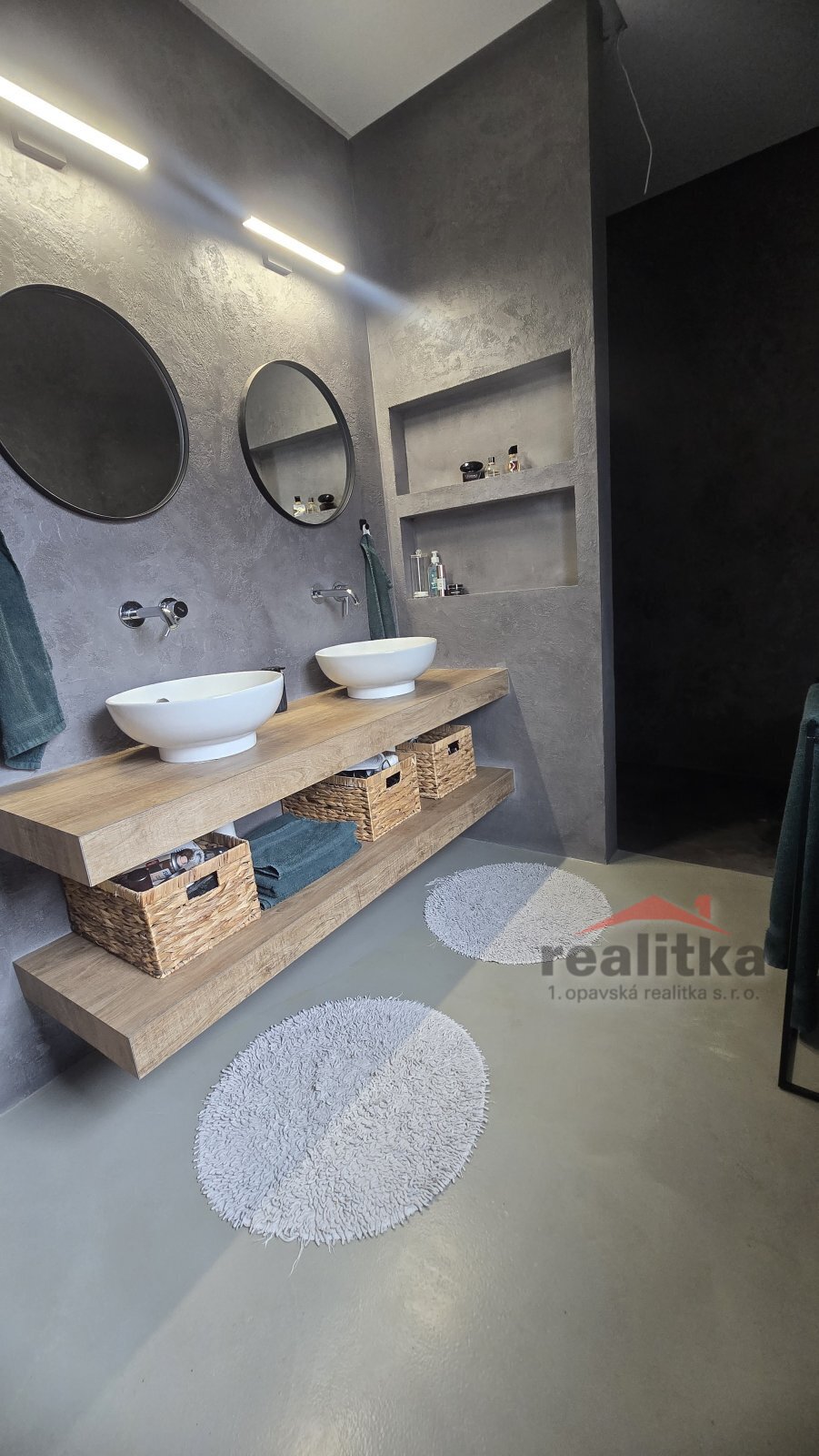 Interiér domu má moderní, kvalitní prvky. V celém domě je liniové zabudované osvětlení, bezobložkové interiérové dveře do všech místností, vinylová bezprahová podlaha, podlahové topení ve všech prostorech domu, betonové designové stěrky, hliníkové okna včetně žaluzií na dálkové ovládání, 2x posuvné terasové dveře - HS portál. Všechny pokoje v domě jsou samostatné se vstupem z předsíně. Ve všech pokojích je pevný internet. Ložnice má vstup do šatny a koupelny, kde jsou 2 umyvadla, wc a sprchový kout. Další koupelna je vedle 2 dětských pokojů, jsou zde opět 2 umyvadla, vana, sprchový kout, další wc je samostatně. Obývací pokoj je spojený kuchyňskou částí a jídelnou se vstupem na velkou terasu s posezením. V obývací části je vše připraveno na zabudování krbu se zkolaudovaným komínem. V prostorné kuchyni je zabudovaná lednice, mrazák, myčka, trouba, mikrovlnka, digestoř a velká indukce a je zde také velká potravinová komora. Obývací pokoj je situovaný na JV stranu, dětské pokoje jsou na stranu severní a ložnice na stranu JZ. Ve vstupní chodbě jsou zabudované skříně a odkládací stěna. Dům je postaven z itongu 37, zateplen 10cm polystyrenem, střecha je Satian - zateplený plech a 50cm izolace. Vytápění domu je tepelným čerpadlem včetně ohřevu vody. V domě je také technická místnost, kde se nachází záložný elektro zdroj, 300l hydrobox, napojení na pračku a sušičku.