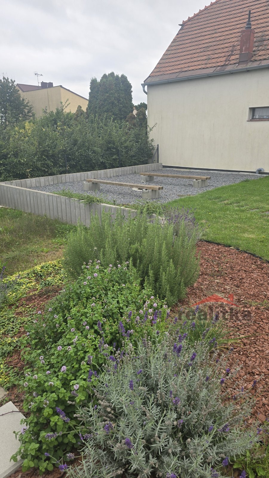 Na zahradě se nachází velká zahradní stavba, kde je společenský, sportovní prostor s kuchyňskou linkou, koupelnou a wc.