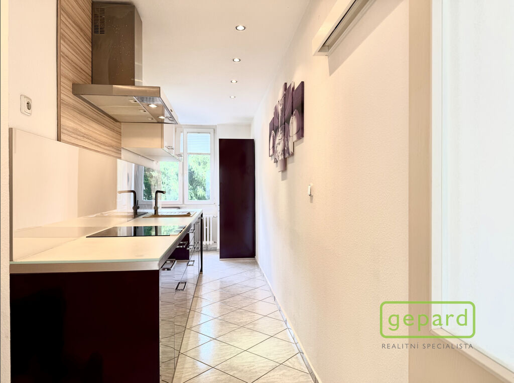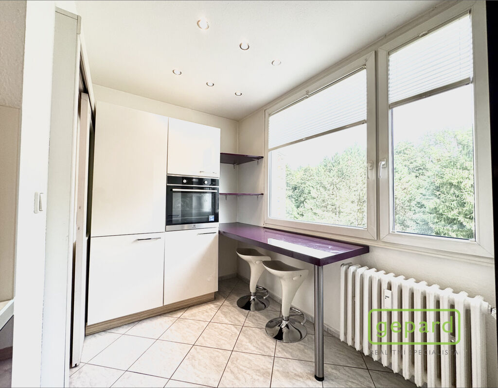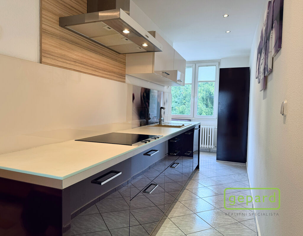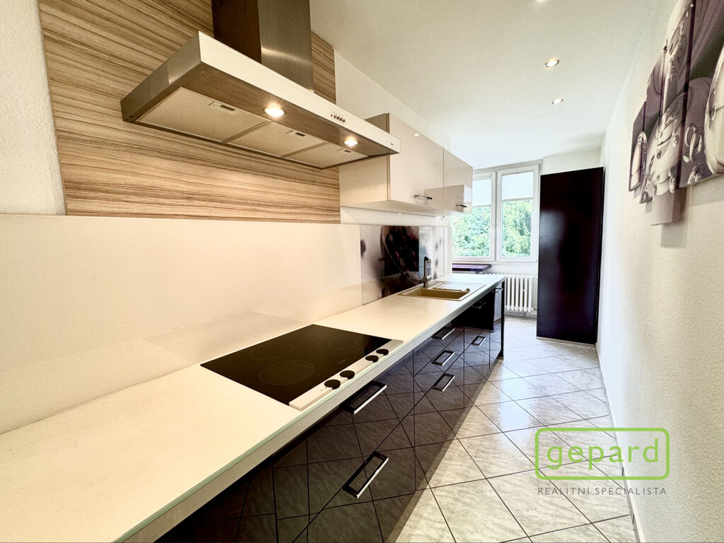 Byt tvoří dva velké pokoje s dostatkem světla díky velkým oknům, samostatná kuchyň a prostorná předsíň. Je částečně vybavený a v dobrém udržovaném stavu. Součástí je moderní kuchyňská linka s vestavěnou lednicí a dostatkem úložného prostoru. K bytu náleží také sklepní koje. Velkým benefitem je slunný balkon, který vybízí k odpočinku.