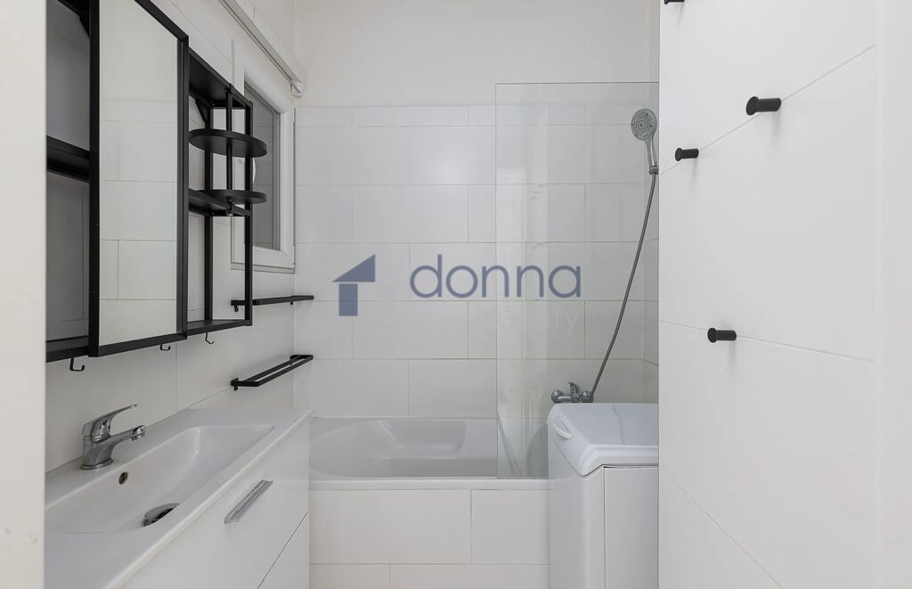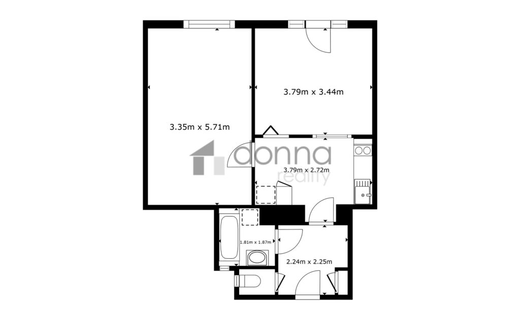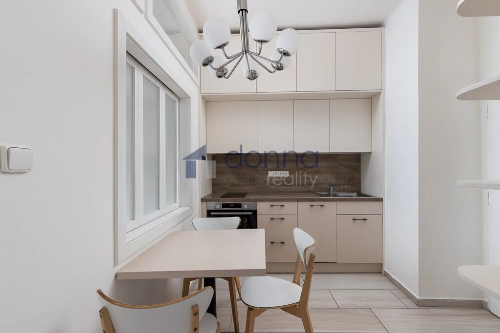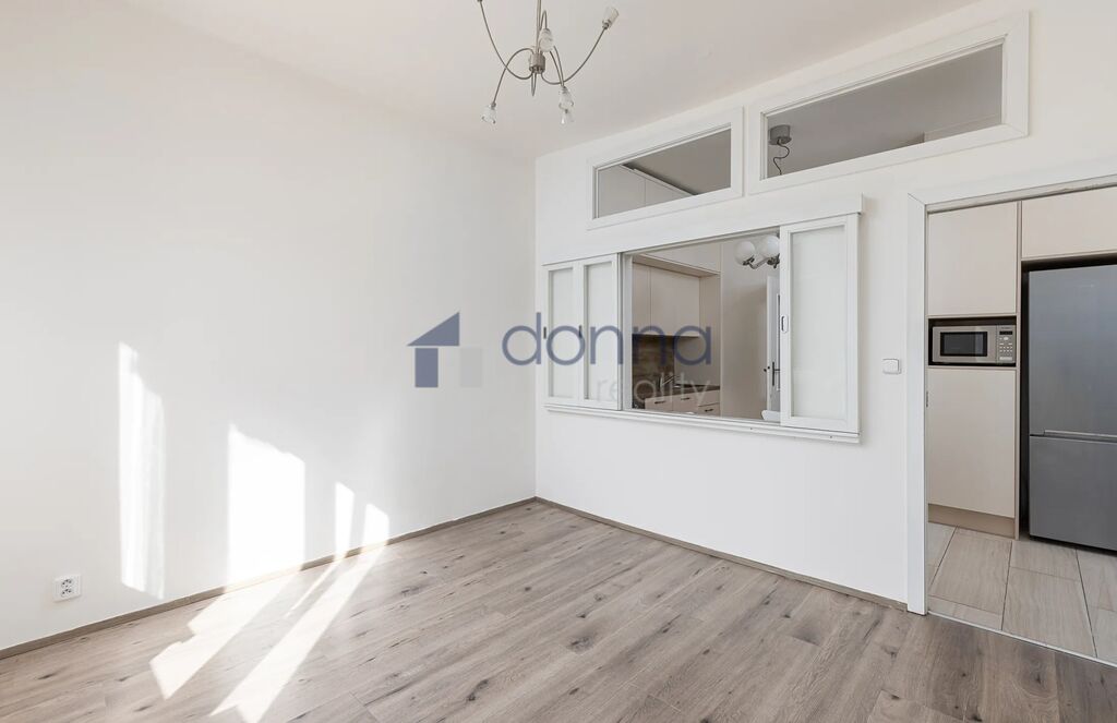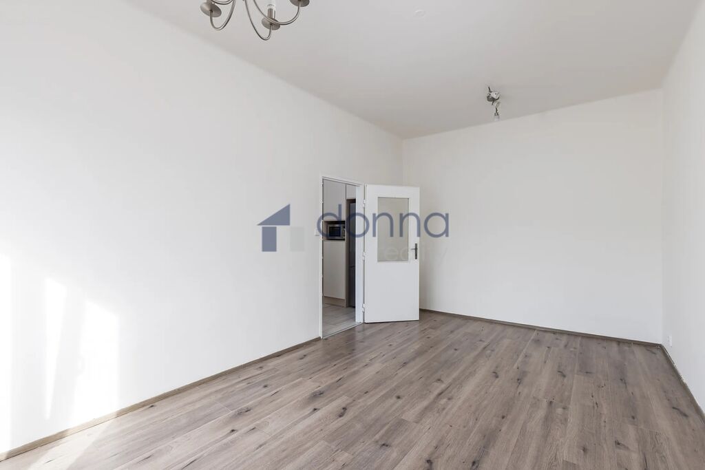 Byt je bez nábytku, v kuchyni je zánovní kuchyňská linka na míru a také velká vestavěná skříň.