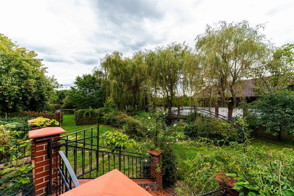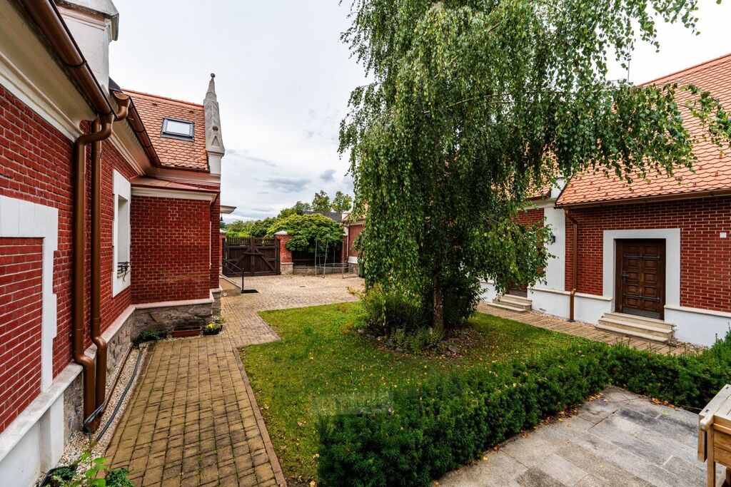 Pozemek – celo obezděný,  vjezdové brány a vstupní vrata, 2 x příjezdové nádvoří, před zahrada s kovaným plotem a bránou do ulice, vnitřní nádvoří, zahrada se zatravněnou plochou a s ovocnými stromy, parková část zahrady s jezírkem, okrasné keře a rostliny, ovocné stromy, na všech zahradních plochách zavlažovací systém, samostatné vrty pro tepelná čerpadla, a vrt pro zavlažování a jezírko, šachty se systémem k zavlažování.