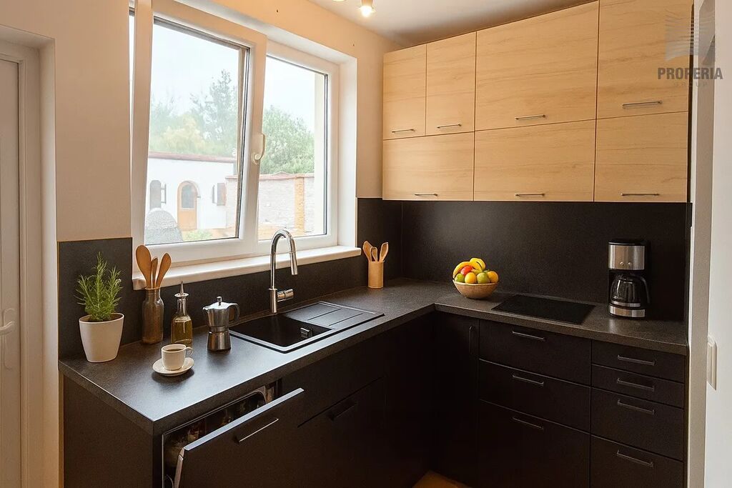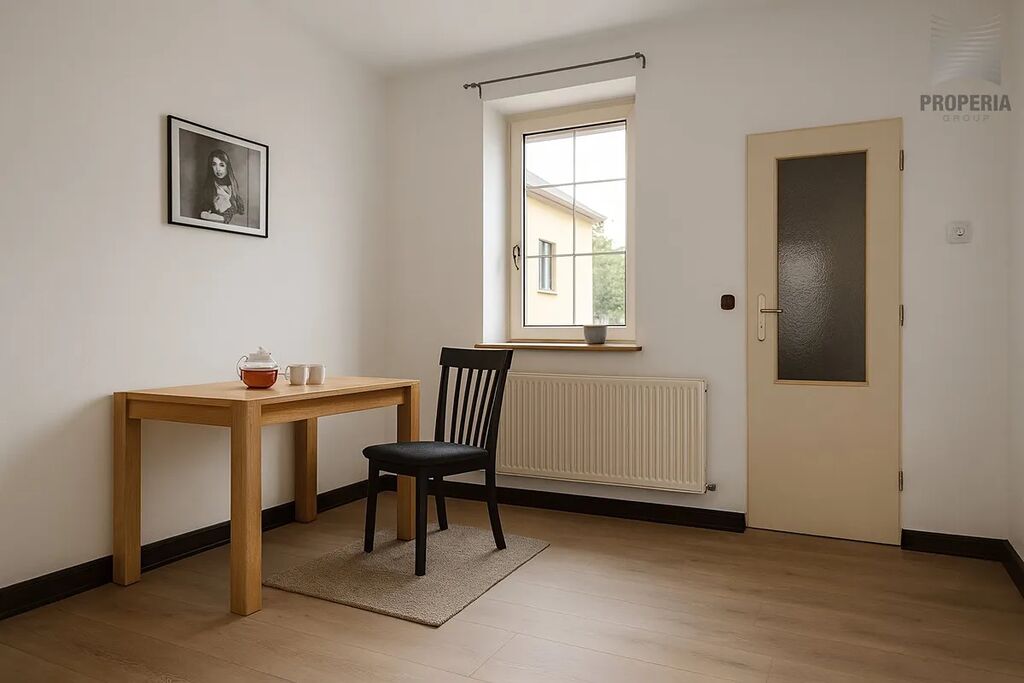 •	Dům je aktuálně řešen jako dvě bytové jednotky – 2+kk (33 m²) a 3+kk (78 m²), oddělené průjezdem.