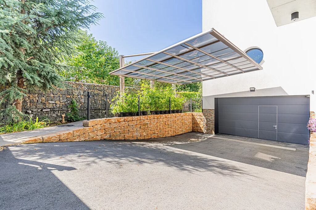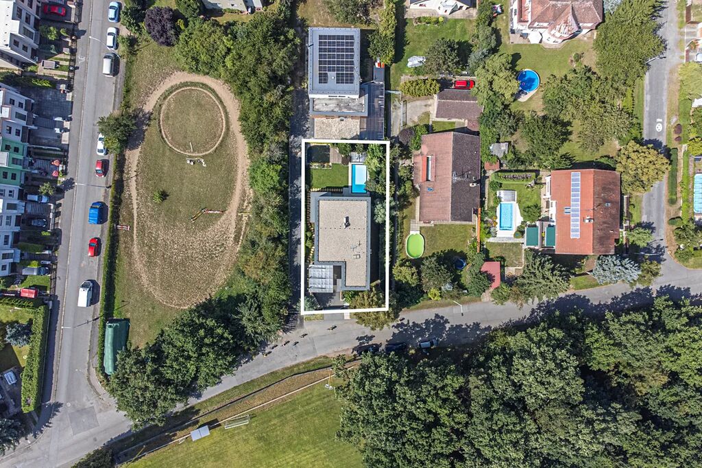 Pozemek o velikosti 615m2 je kompletně oplocen a vjezd na pozemek je zajištěn bránou s el. pojezdem. Zastavěná plocha pozemku je 192m2 a užitná plocha domu je 408m2 (garáž 70m2).