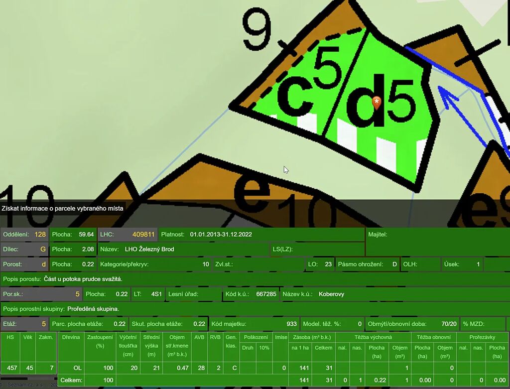 Prodáme pozemek, les s porostem stromů v k.ú. Koberovy, parc.č. 4493.