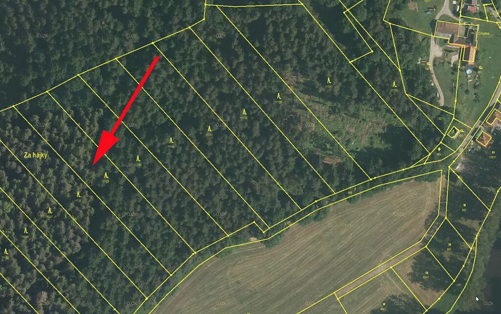 Prodáme pozemek, les v k.ú. Rájov, obec Zlatá Koruna, parc.č. 117/29.