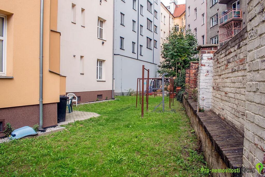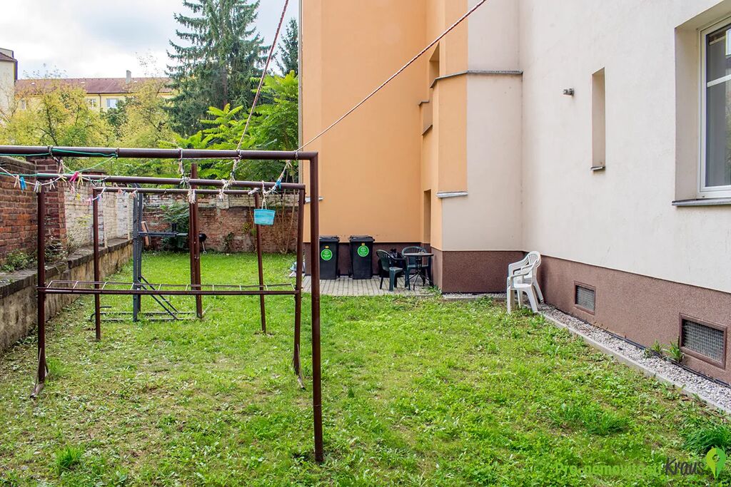 Součástí bytu je i nadstandardně velký sklep o výměře 7 m². Dále je možné využívat zahradu ve vnitrobloku, prostornou sušárnu či střešní terasu.