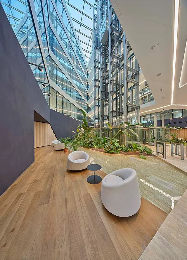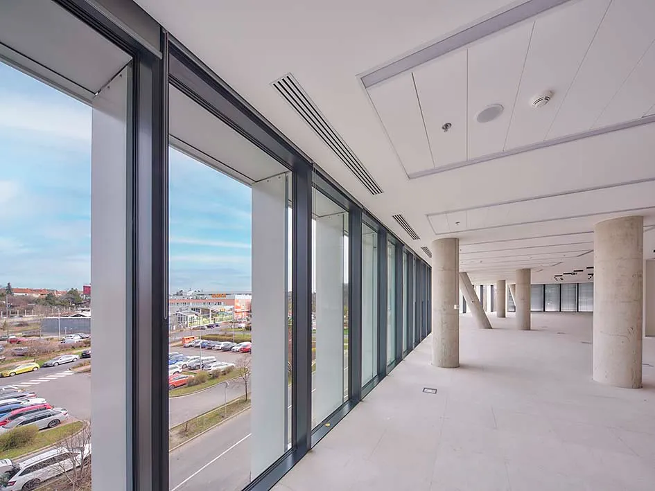 Nabízíme na pronájem moderní kanceláře o ploše od 320 do 7 802 m2 v architektonicky originální administrativní budově Roztyly Plaza, která nově vyrostla přímo u stanice metra linky C – Roztyly v Praze 11. Elegantní budova aspirující na získání certifikátu BREEAM Excellent, nabízí k pronájmu celkem 21 700 m² kanceláří v 7 nadzemních podlažích, s výměrou typického patra až 3 700 m2, a dále pak 1 600 m² obchodních ploch v přízemí. Aktuálně jsou k dispozici kancelářské prostory ve 4. NP (938 m2), ve 3. NP (4 073 m2) a ve 2. NP (2 791 m2). Obchodní prostory v přízemí jsou plně pronajaty (lékárna, fitness, bankovní služby apod). Uživatelé objektu také určitě ocení možnost moderního zaměstnaneckého stravování přímo v objektu. Strategické umístění budovy přímo u stanice metra a autobusového terminálu Roztyly zajišťuje vynikající dostupnost MHD. Kanceláře jsou výborně dostupné také automobilem z dálnice D1 i Městského okruhu. Parkování je zajištěno na 460 stáních ve 4 podzemních podlažích jak pro nájemce, tak pro veřejnost. Pro práci i odpočinek během pracovního dne je určena rozlehlá střešní terasa se zahradní úpravou a venkovním sezením nebo jedinečné vnitřní atrium s relaxačními zákoutími a vodními prvky, kde se budete cítit příjemně v každém ročním období. V bezprostředním sousedství projektu se také nachází park Nové Roztyly, který vybízí ke krátké procházce přírodou či rozmanitým sportovním aktivitám. Pro veřejnost jsou v parku zdarma pravidelně pořádány skupinové lekce jógy nebo běhy v přilehlém Krčském lese, volně lze využít i fitness na street workoutovém hřišti, nebo parkourové hřiště. Kancelářské plochy jsou nabízeny ve standardu open plan.