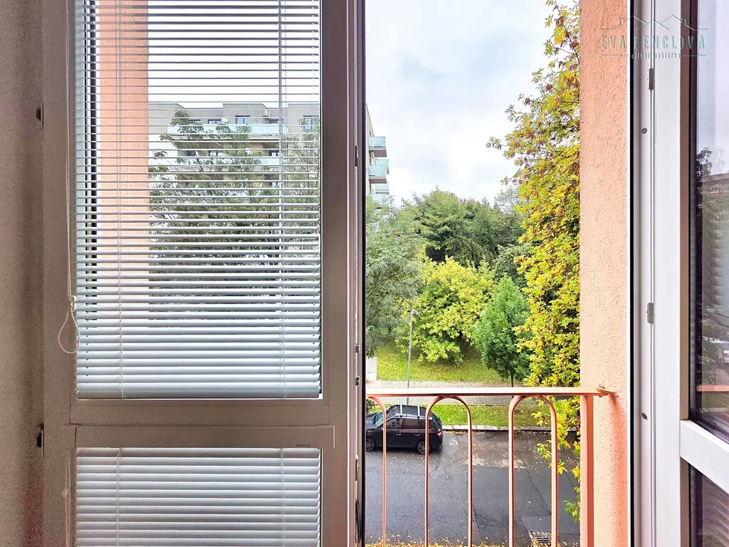 Z většího pokoje se vstupuje na balkon o výměře 3 m², který směřuje na jih s výhledem do vnitrobloku.