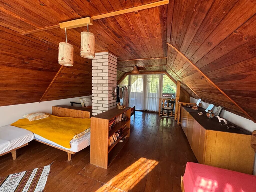 Zděná chata z roku 1964, v roce 1981 chata rozšířena o zděnou část zázemí koupelny a přístavby 2.NP s dřevěnou verandou. Nemovitost je ve velmi dobrém technickém stavu, napojena na obecní studnu s pitnou vodou na půlroční bázi – jaro až podzim, na zimu voda uzavřena. Odpad sveden do jímky, vytápění – kamna na tuhá paliva, ohřev vody – el.bojler. Chata disponuje v 1.NP zádveřím, koupelnou s vanou, chodbou, WC, samostatnou kuchyní, prostorným obývacím pokojem s téměř novými kamny, ložnicí, prosklenou verandou, komorou pod schody. Ve 2.NP je velký otevřený prostor – pokoj s verandou. Dostatek úložného prostoru nabízí pochozí půda, sklep a dřevník na zahradě. Podlahové krytiny – dřevo, dlažba. Na zahradě jsou vysázeny stromy, keře, celý pozemek je oplocen.