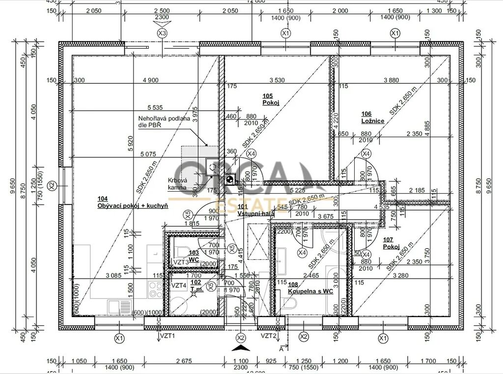 •	klimatizační jednotky připravené v obývacím pokoji a na chodbě