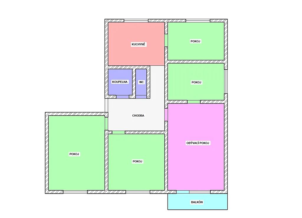 Podlahová plocha bytu včetně příslušenství je 93,60m2, přičemž příslušenství tvoří sklep umístěný v suterénu domu 2,9m2 a balkón přístupný z bytu 3,15m2. Byt je ve vynikajícím stavu, kdy před cca 10lety proběhla částečná rekonstrukce spočívající ve výměně bytového jádra (sádrokarton) vč. veškerých rozvodů, nová koupelna, WC, nová kuchyň vč. spotřebičů, výměna podlahových krytin (vinyl, dlažba), vestavěné skříně + šatna, atd.. Vytápění a ohřev vody zajištěn dálkově (horkovod), vaření na plynu. Součástí prodeje je i veškeré vybavení a zařízení bytu.
