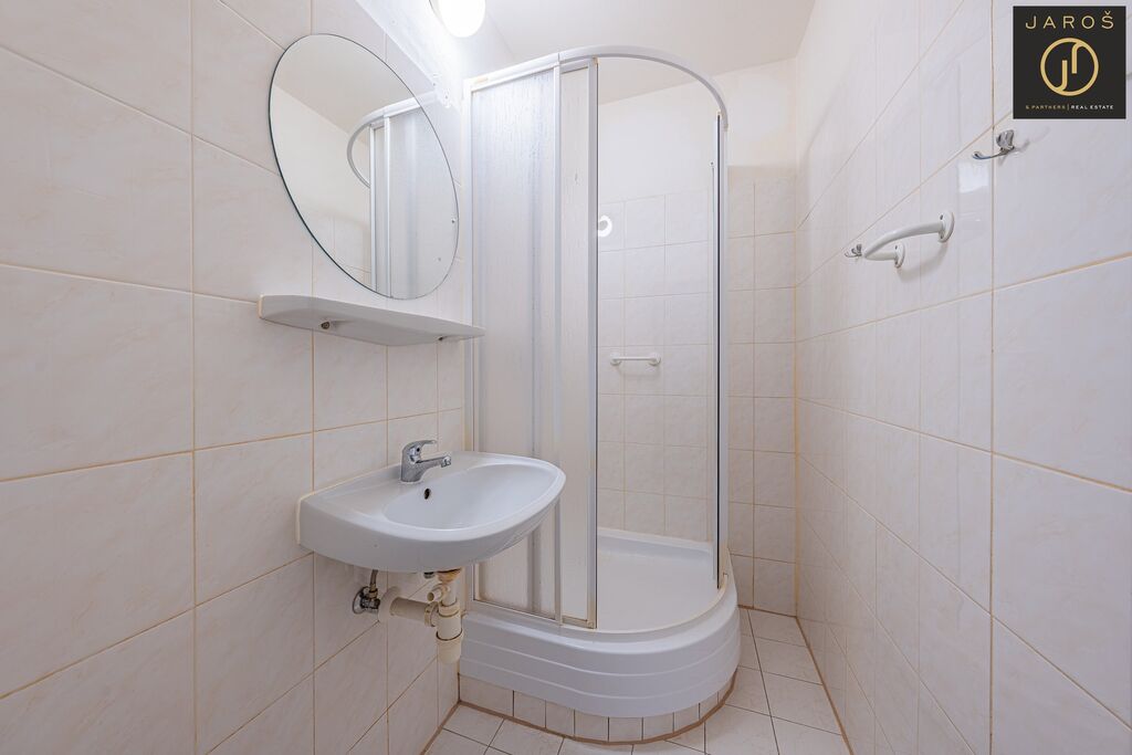 Byt prošel modernizací a díky praktickému řešení nabízí maximální využití prostoru. Dominantou je prostorná kuchyňská linka na míru od truhláře, vybavená vestavnou lednicí, elektrickou troubou, indukční varnou deskou i pračkou. Kuchyň je propojena s obývacím prostorem, což dodává bytu vzdušnost a pohodlí. Součástí bytu je také útulná ložnice, kam se pohodlně vejde postel i šatní skříň. Koupelna je zděná, se sprchovým koutem, a toaleta je řešena samostatně.