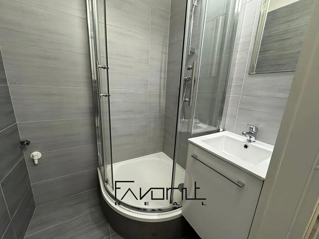 • Zvětšená koupelna (sádrokartonové příčky) se sprchovým koutem, umyvadlem, skříňkou a zrcadlem