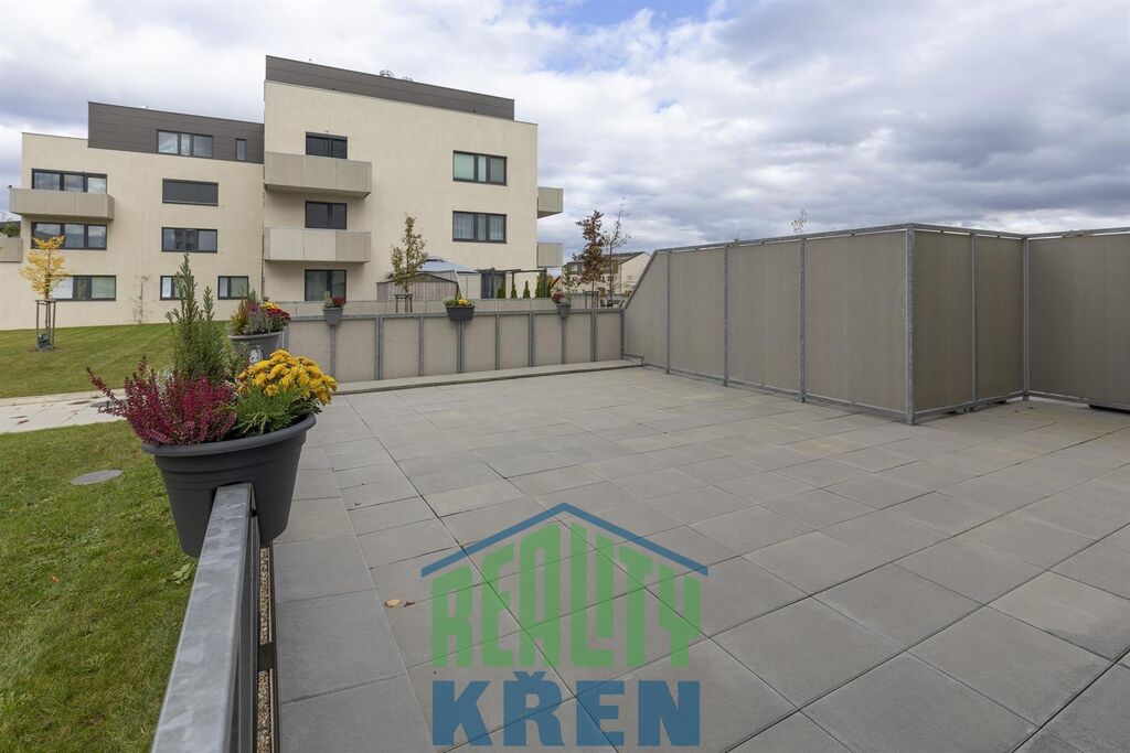 Dlouhodobý pronájem moderního bytu 2+kk (48,2 m²) s terasou a gar. stáním, v klidné a žádané lokalitě Horoměřic, ulice Žižkova.