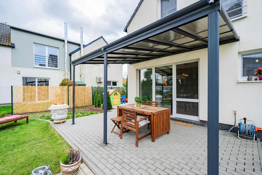 Pokud hledáte pohodlné bydlení pro Vaši rodinu se zahrádkou a zároveň v blízkosti Prahy, máme pro Vás skvělou nabídku na koupi řadového domku. Jedná se v podstatě o mezonetový byt 3kk, 86 m2, se zastřešenou terasou, zahradním domkem, parkováním a pečlivě udržovanou zahradou o rozloze 228 m2.
