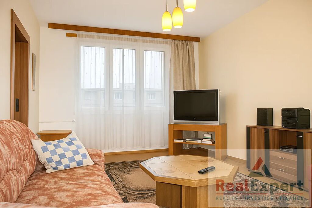 Exkluzivně Vám nabízíme k prodeji zrekonstruovaný, klidný byt 2+1/L, o ploše 65 m2 + zasklená lodžie 7 m2 (celkem 72 m2), situovaný v 5. patře zrekonstruovaného panelového domu, ve vyhledávané lokalitě Praha 4 - Kamýk, ul. Olbramovická. Byt se sestává ze vstupní haly, prostorného obývacího pokoje, ložnice, kuchyně s jídelním koutem a koupelny s vanou a toaletou. Kuchyňský kout je plně vybavený spotřebiči (plynový sporák s el. troubou, digestoř, lednice, mrazák, myčka nádobí a mikrovlnná trouba). Na chodbě a v ložnici jsou praktické vestavěné skříně. K bytu náleží sklep. Dům se nachází v klidné ulici obklopené zelení. Veškerá občanská vybavenost v místě, sportovní a rekreační vyžití - cyklostezky, stezky pro turisty i příznivce in-line bruslí, fotbalové hřiště, tenisové kurty, fitness. Doporučujeme.
