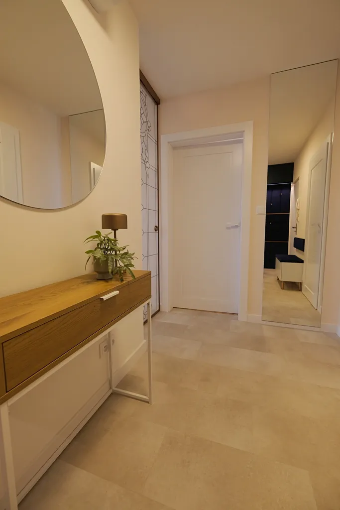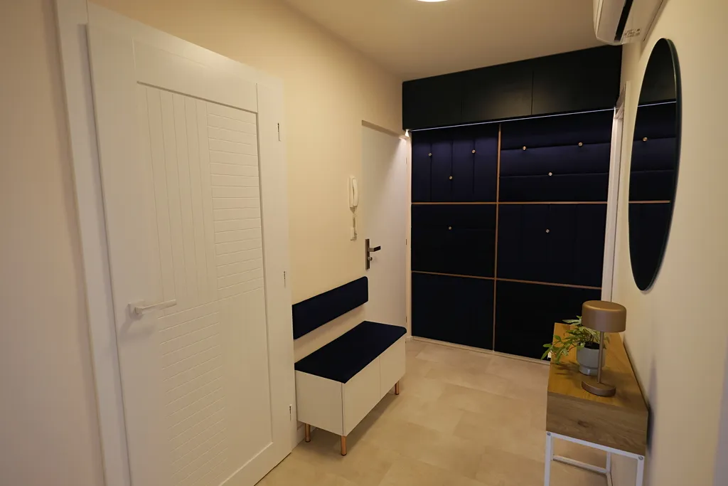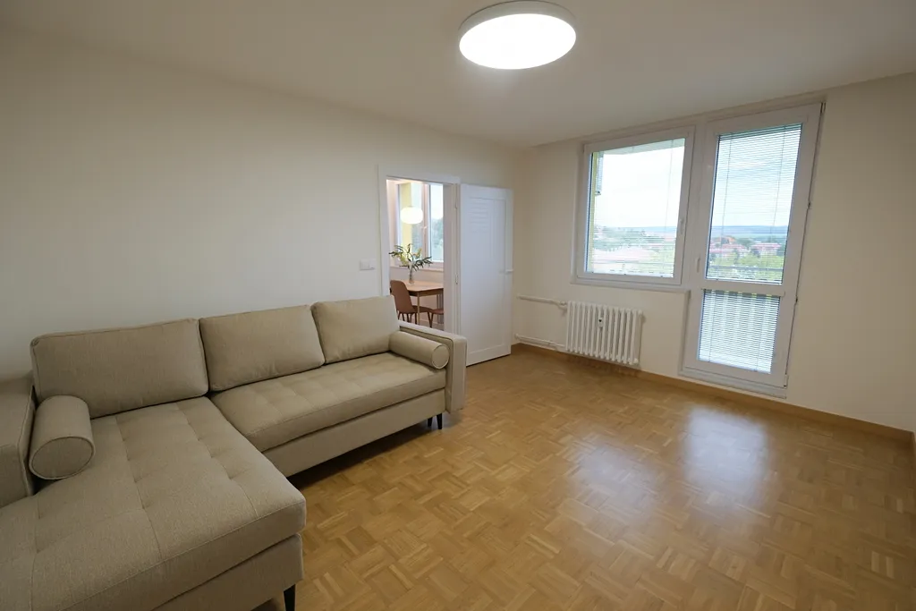 Nabízíme dlouhodobý pronájem luxusního bytu po celkové velmi vydařené rekonstrukci s dispozicí 2+1 v žádané lokalitě Uherského Brodu - části Šaripova. Jedná se o komfortní bydlení s dobrou dostupností do centra města s krásným výhledem na okolí. Celý interiér navrhla bytová designérka, která splnila funkčnost, praktičnost a styl celého bytu. Dispozičně se jedná o vstupní chodbu s klimatizací, odkládacím prostorem a šatnou. Kuchyň je oddělena posuvnými dveřmi s vitrážovou výplní, je zde nová kuchyňská linka s mnoha úložnými prostory a vestavěnými spotřebiči - lednice s mrazákem, myčka, pračka, indukční varná deska, horkovzdušná a mikrovlnná trouba a jídelní stůl se čtyřmi židlemi. Obývací pokoj je zařízen rozkládací sedací soupravou se vstupem na lodžii. Samostatná ložnice je orientovaná na jihozápad. V koupelně se nachází vana se zástěnou, kvalitní umyvadlo se skříňkou, žebříkový radiátor, skříňka s úložným prostorem a toaleta. Podlahy jsou řešeny novými dřevěnými parkety a dlažbou. K bytu náleží sklepní kóje umístěná v přízemí bytového domu. Parkování je možné přímo u domu. Nájem činí 24.000,-Kč/měsíčně + 4.500,-Kč/měsíčně na energie. Byt je ihned k dispozicí.