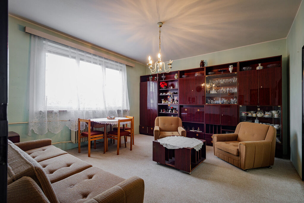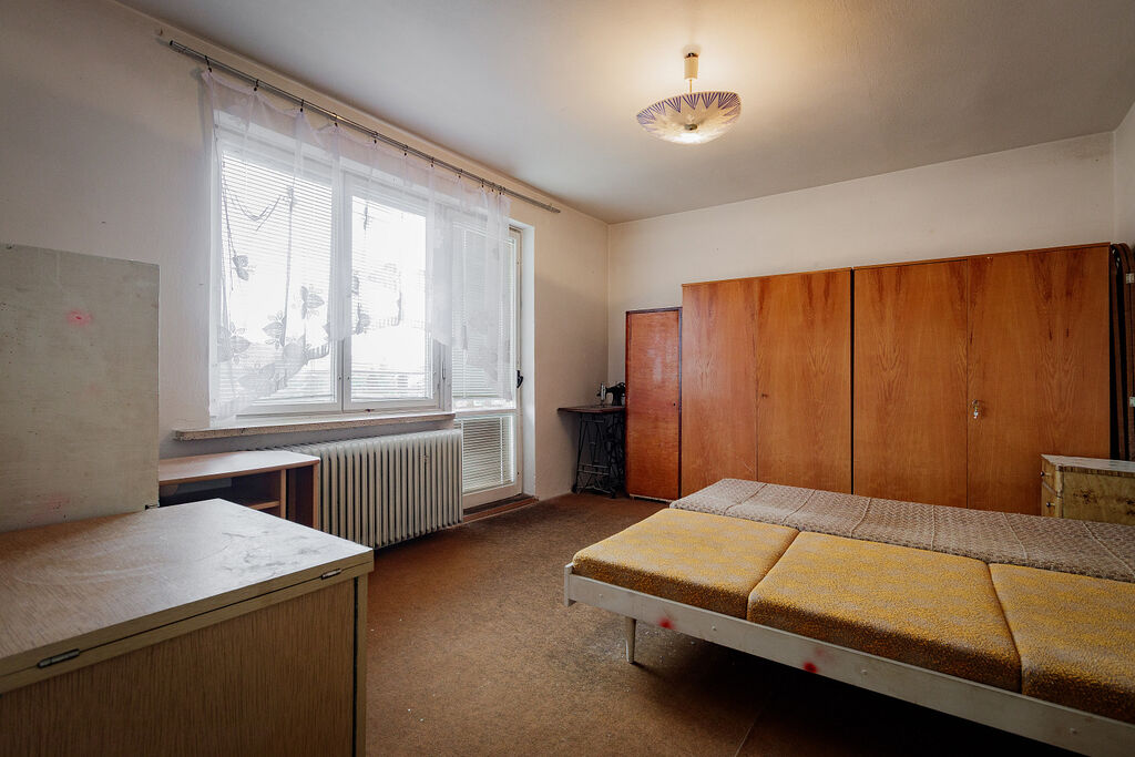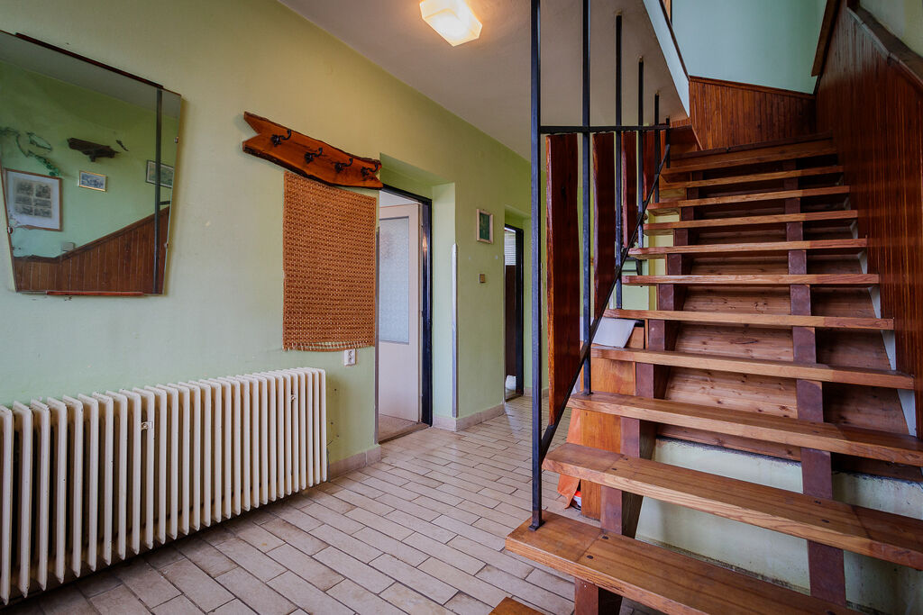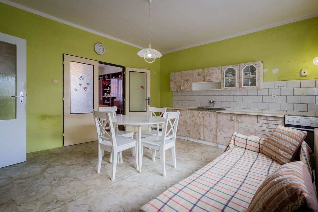 - V patře: 3 neprůchozí pokoje, koupelna s WC, balkon, vstup na půdu (možné využití).