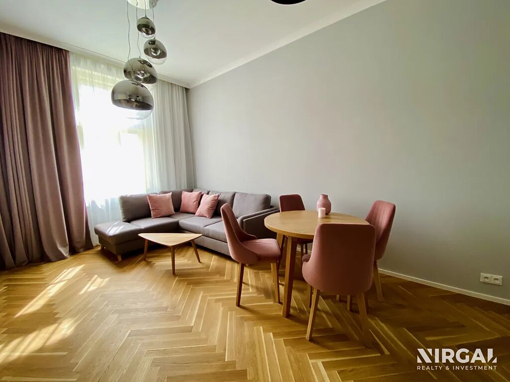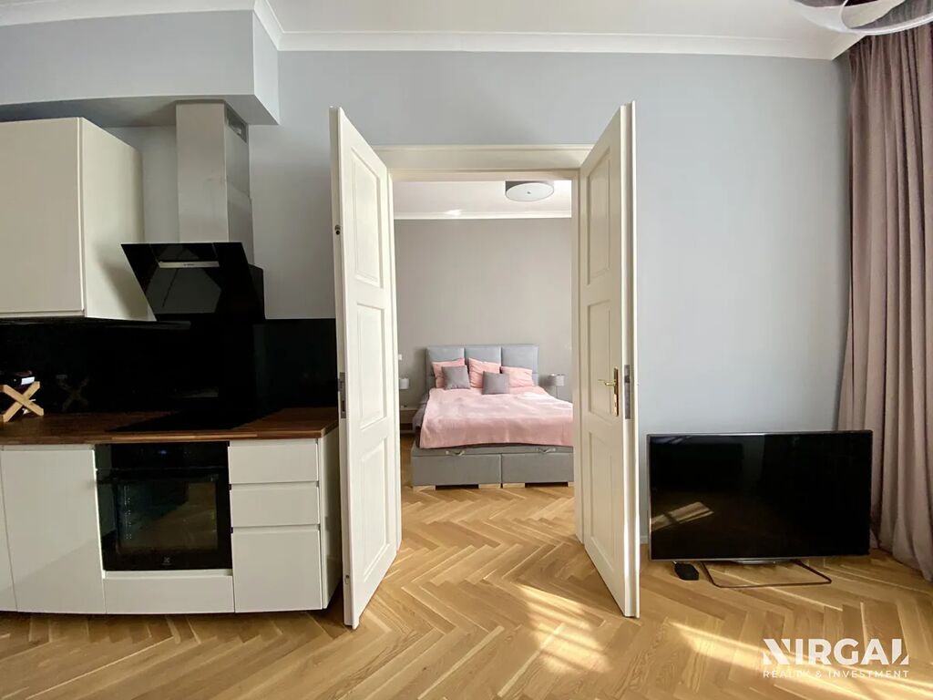 Byt je po kompletní rekonstrukci s důrazem na detail a kvalitu provedení – parketová podlaha s podlahovým vytápěním, vysoké stropy, elegantní design a moderní technologie.