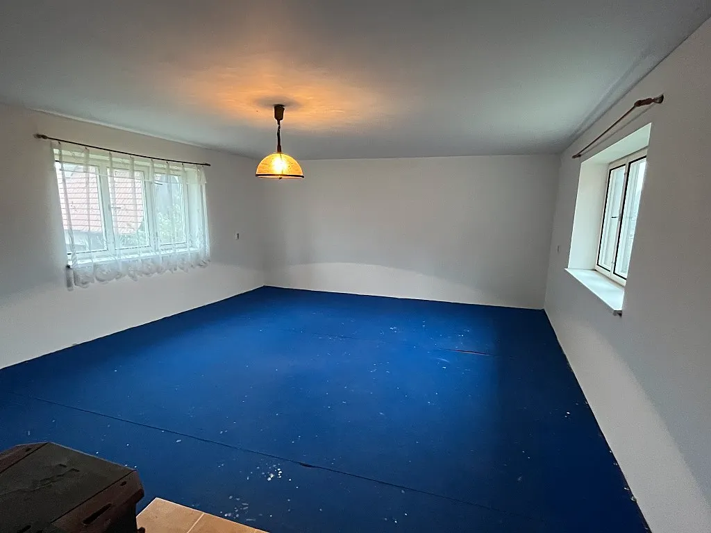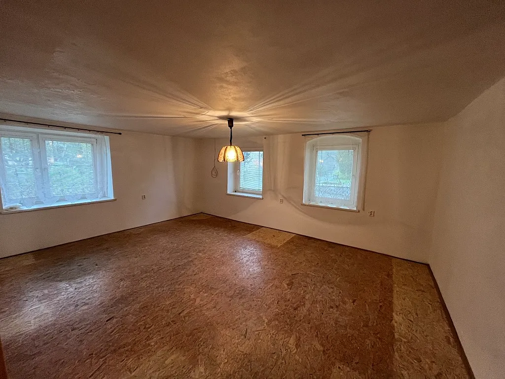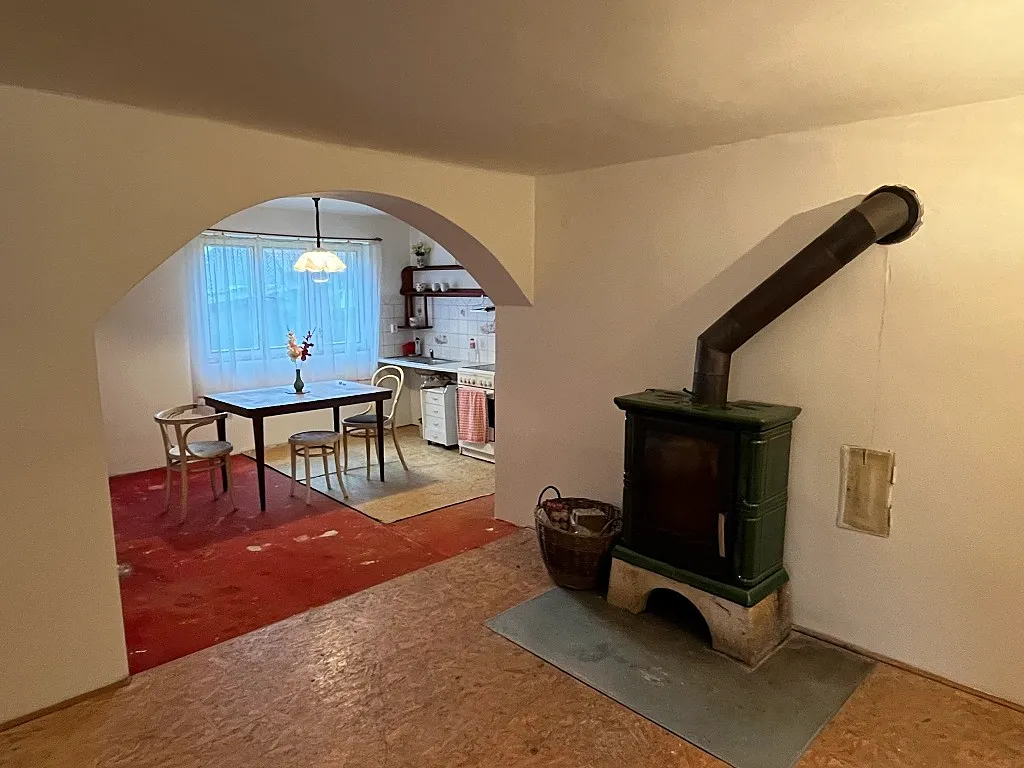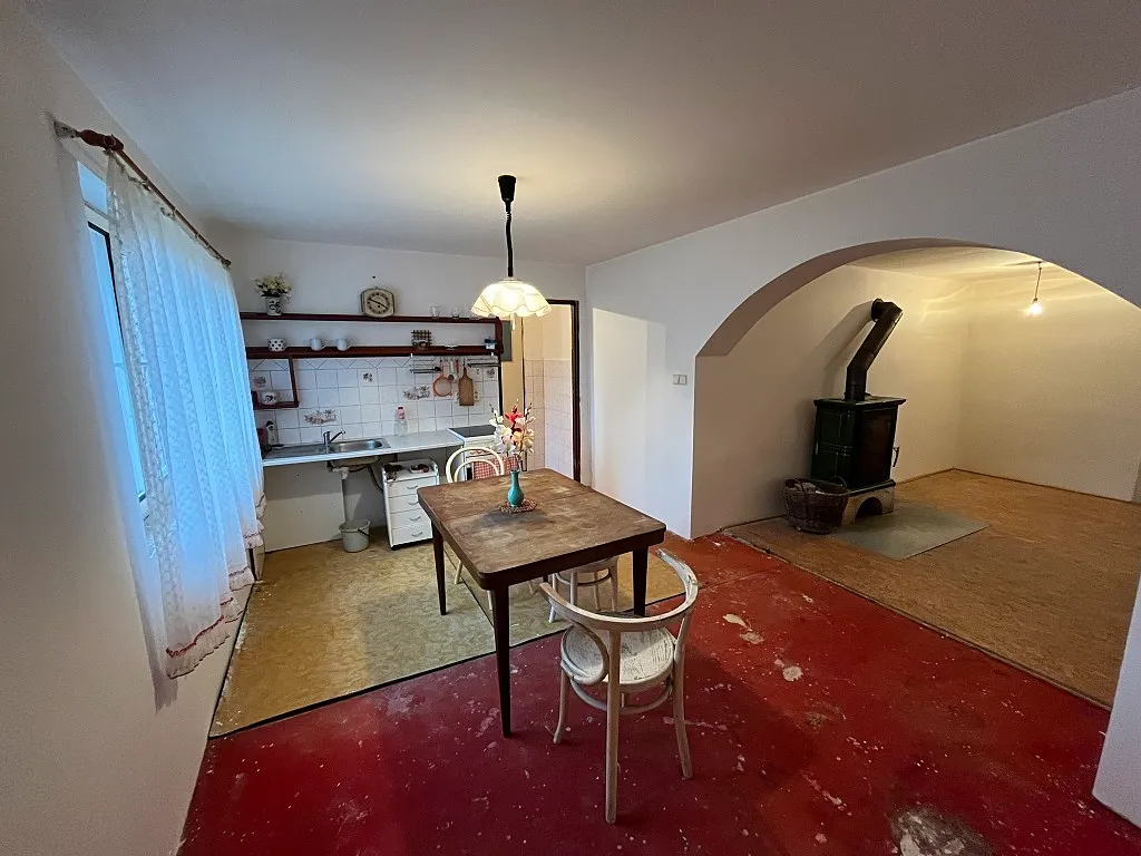 V zastoupení majitele nabízíme k prodeji samostatně stojící rodinný dům sestávající z nadzemního podlaží o velikosti 3+1 a podzemního podlaží, které je s ohledem na svažitý terén částečně nad zemí. Dům tvoří v přízemí pokoje o výměře 37 m2, 30 m2 a 19 m2, předsíň 3 m2, kuchyně 21 m2, spíž 1 m2, koupelna 7 m2, WC 1 m2, schodiště 3 m2, tj. celkem 122 m2. V suterénu se nachází sklepní prostory a bývalá stodola o výměře celkem 122 m2. Před 20 lety byla započata přístavba, obnoven sedlový krov a položena nová pálená střešní krytina, nebyla dokončena fasáda a podlaha jednoho pokoje. Stavba je napojena na obecní vodovod, v domě je i studna, odpad sveden do jímky, elektřina je zavedena světelná i motorová (230V/400V), vytápění na tuhá paliva přes krbová kamna (možnost připojení na plyn). Okna jsou dřevěná a částečně již plastová, původní zdivo je smíšené, jinak cihlové. Celková výměra pozemku dle katastru nemovitostí je 855 m2, z toho zastavěná plocha s rodinným domem 231 m2, související zahrada je zatravněná. Všechny pozemky tvoří jeden funkční celek s parkováním na vlastním pozemku. Dům je obyvatelný a jeho energetická náročnost je hodnocena v kategorii „G“.