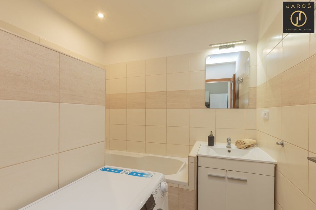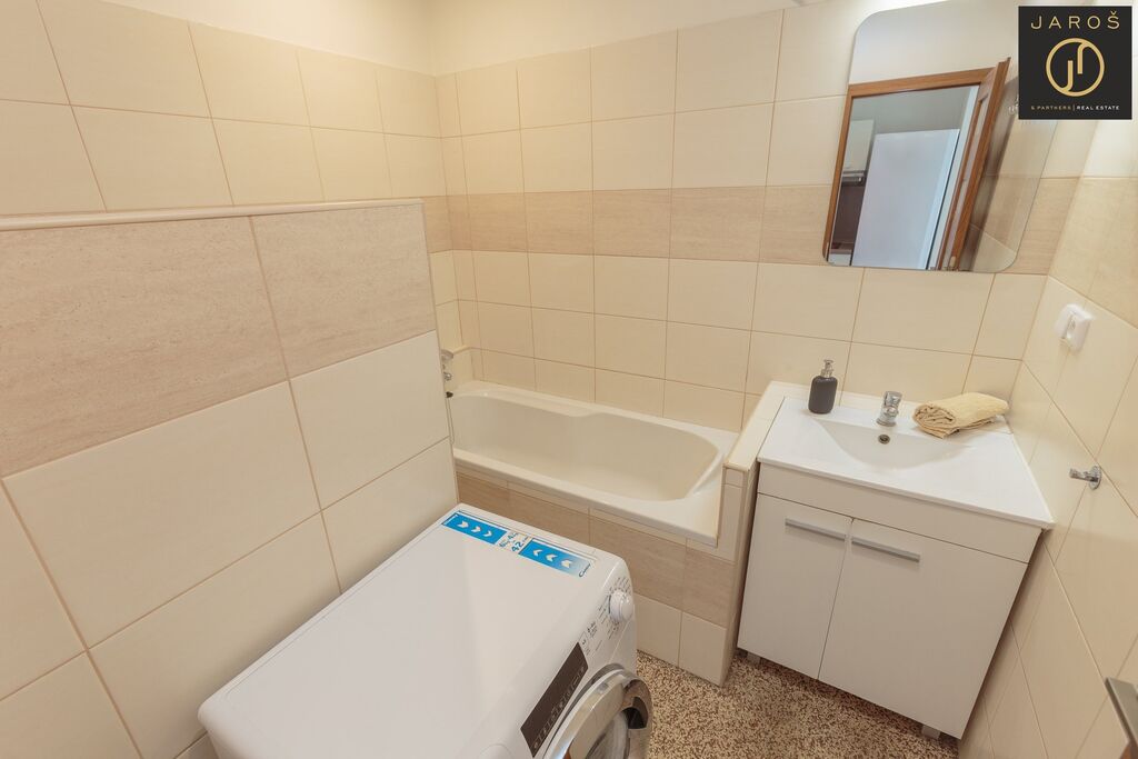 Byt prošel velmi úspěšnou rekonstrukcí, interiér je kompletně a velmi vkusně zařízen. Nabízí pohodlí a klidnou atmosféru pro vaši relaxaci po náročném dni. K bytu náleží sklepní kóje, k dispozici je společná kolárna. Před i za domem se nachází k relaxaci park a nedaleko dětské hřiště.