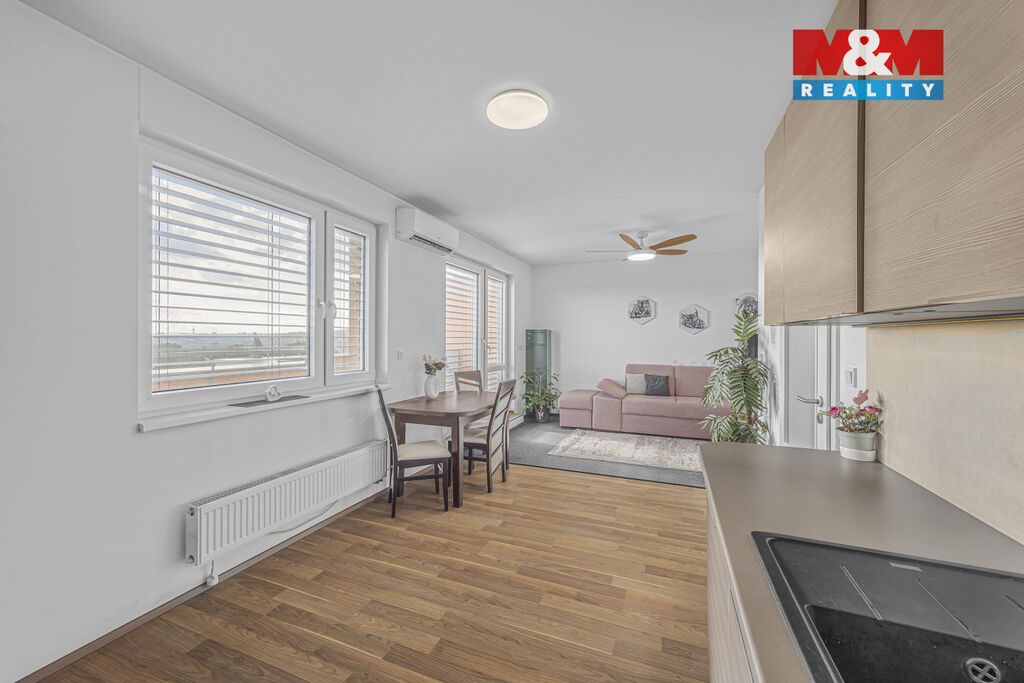 Nabízíme k prodeji moderní byt 3+kk o užitné ploše 59 m², situovaný v klidné části pražského Černého Mostu. Byt se nachází v posledním, 5. nadzemním podlaží cihlového domu z roku 2017 a nabízí krásný výhled z terasy o ploše 15 m². Součástí prodeje je také garážové stání a sklep. Byt disponuje kvalitní kuchyňskou linkou ORESI s vestavěnými spotřebiči značky Electrolux. Komfort obytných prostor zajišťují klimatizační jednotky v obývacím pokoji a ložnici, s venkovní jednotkou umístěnou na střeše. Všechna okna jsou vybavena elektricky ovládanými předokenními žaluziemi 90 Z. Nemovitost je ve velmi dobrém stavu a připravena k okamžitému nastěhování. Ideální volba pro ty, kteří hledají klidné bydlení s výbornou dostupností služeb.