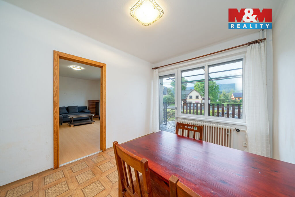 Nabízíme k prodeji prostorný rodinný dům 5+1 v klidné části obce Domašov u Jeseníka. Tento dvoupodlažní dům se smíšenou konstrukcí (panel, cihla) je ideální pro rodinné bydlení nebo jako investice pro komerční pronájem díky atraktivní lokalitě Jeseníku vhodné pro turistiku, cykloturistiku a lyžování. Dispozice domu: 1. NP- vstupní chodba, kuchyň, jídelna se vstupem na zahradu, spíž, obývací pokoj a WC. 2. NP- chodba, ložnice, dětský pokoj, pokoj pro hosty, koupelna s WC. Suterén - garáž s dílnou, prádelna, sklad, kotelna a uhelna. Venkovní dřevěná kůlna o velikosti 14 m². Dům má plastová okna a vstupní dveře, v roce 2015 provedena rekonstrukce střechy (oplechování a šedá pochozí fólie), v roce 2017 nový automatický kotel na hnědé uhlí nebo pelety. Celková užitná plocha činí 156 m² a nachází se na pozemku o rozloze 439 m², který zahrnuje i zahradu. Neváhejte a přijďte se přesvědčit o výjimečnosti této nemovitosti! S financováním pomůže náš hypoteční specialista.