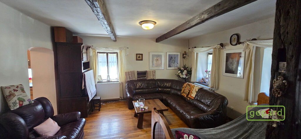 Obytná část, vhodná jak k trvalému bydlení tak i rekreaci, se skládá v přízemí z velkého obývacího pokoje, kuchyně, sociálního zařízení a kotelny.