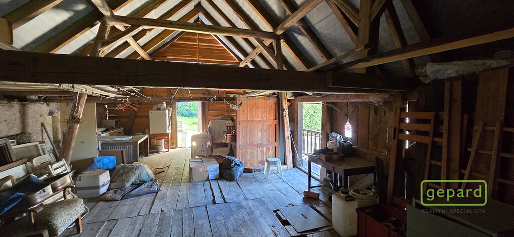 Prodej domu, vesnického stavení s velkou zahradou v obci Slavkov nedaleko Českého Krumlova.