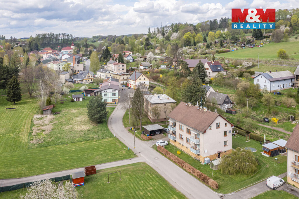 Bytový dům se nachází nedaleko od náměstí, kde je veškerá občanská vybavenost, MŠ, ZŠ, zastávka vlaku i autobusu.