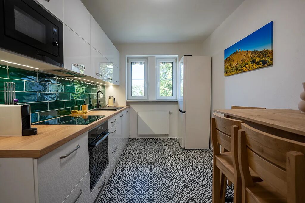 Byt je po kompletní rekonstrukci a plně vybavený (kuchyňská linka se spotřebiči, nábytek). Vytápění je řešeno elektřinou.