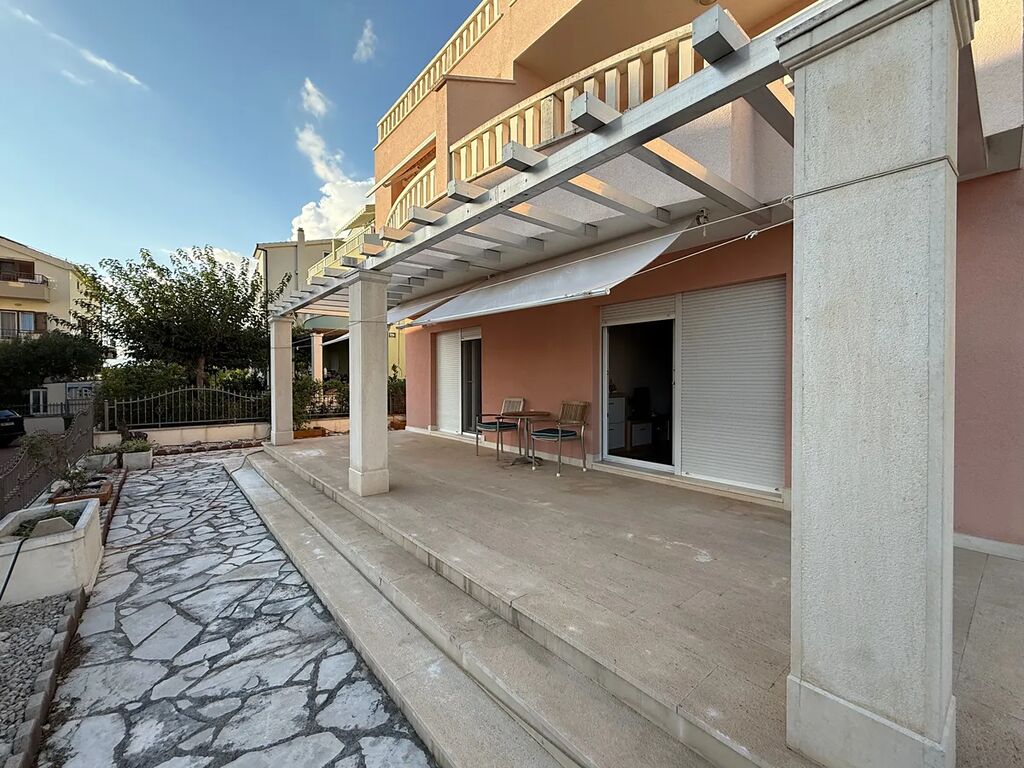 Krásný apartmán o ploše 169 m2 je umístěný v přízemí třípodlažního domu pouze se 3 bytovými jednotkami a sestává z chodby, dvou koupelen, tří ložnic, obývacího pokoje a velké terasy a zahrady orientované na jih, která apartmán, obklopuje.