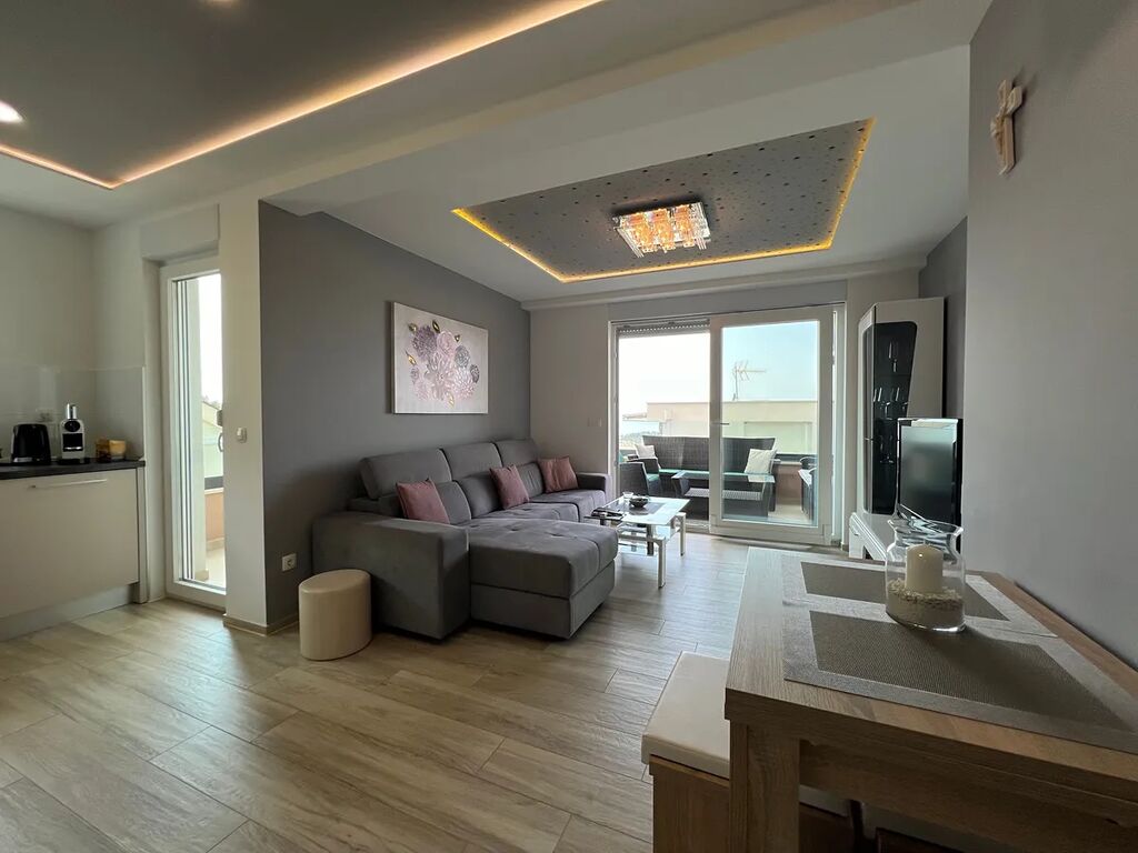 Dovolujeme si Vám nabídnout na prodej pěkný a prostorný apartmán se 3 ložnicemi a garáží, s částečným výhledem na moře, ve druhém podlaží nově postavené budovy s celkem 8 apartmány nedaleko centra Makarské ve Splitské oblasti v Chorvatsku.