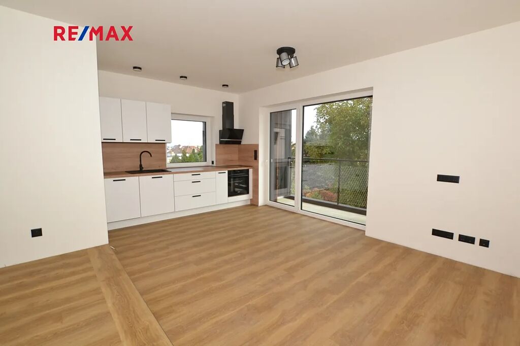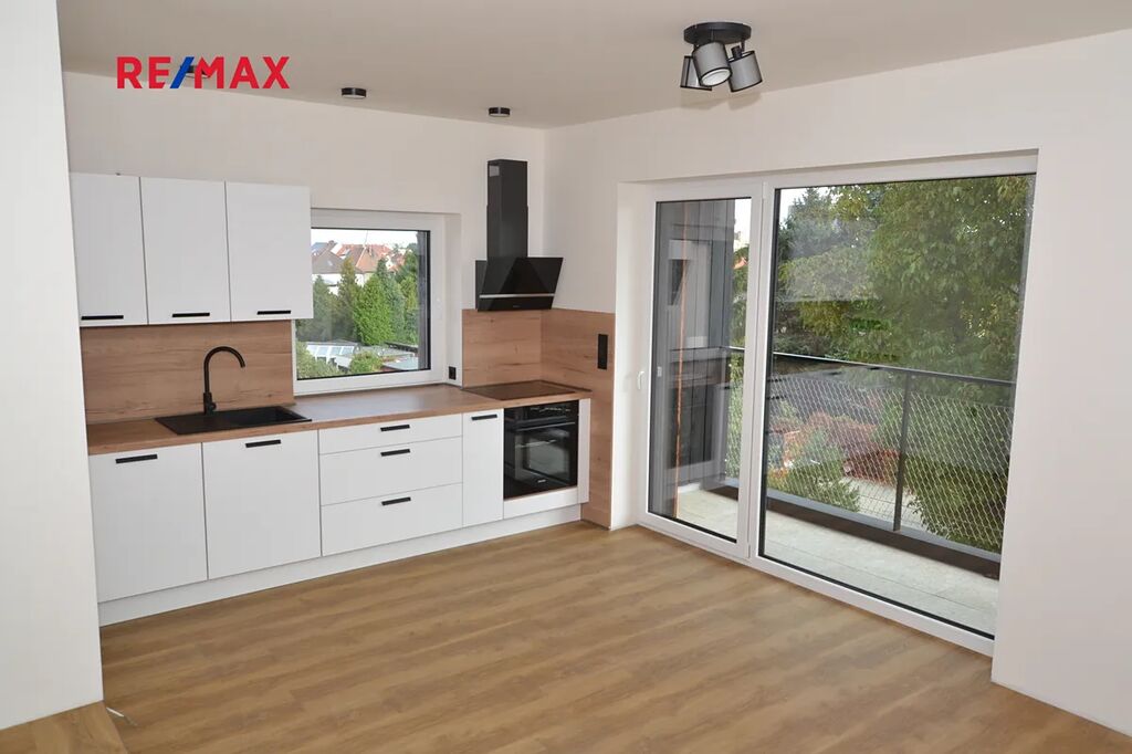 V obývacím pokoji je k dispozici moderní kuchyňská linka se sklokeramickou varnou deskou a multifunkční troubou, z obývacího pokoje je vstup na lodžii.