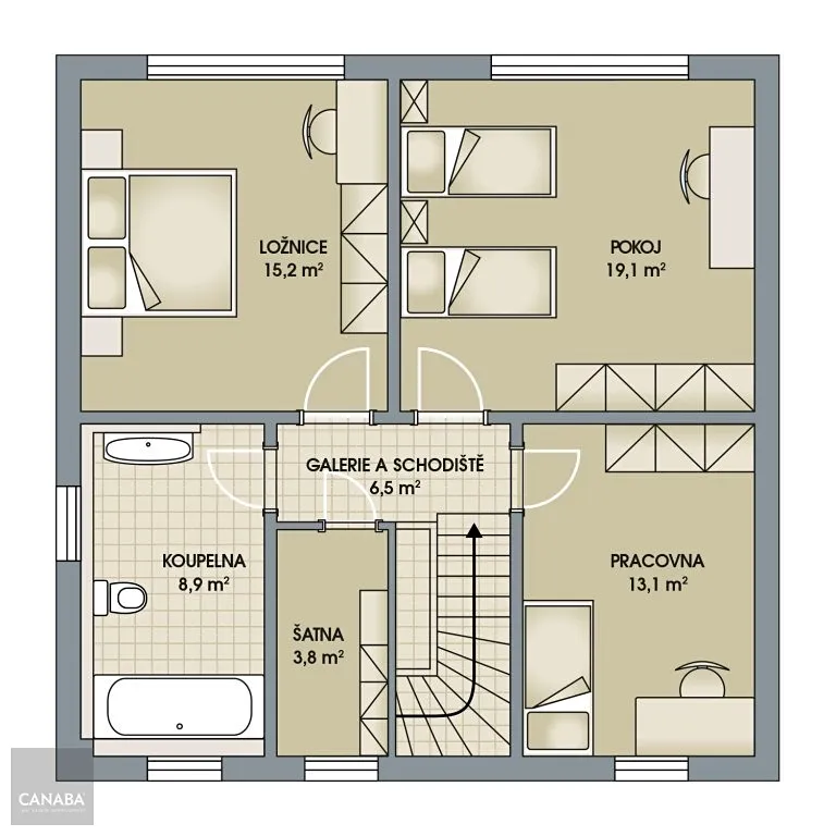 • Pracovna 13,1 m2 (nebo pokoj pro hosty)