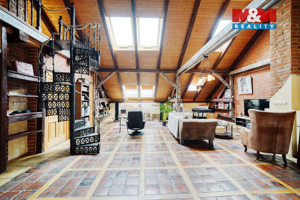 Pronájem unikátního mezonetového bytu o užitné ploše 145 m2. Půdní nemovitost se nachází ve vyhledávané lokalitě centra Plzně, ulice Purkyňova. Byt se nachází ve 4. nadzemním podlaží. Součástí pronájmu je i parkovací stání a sklepní kóje v suterénu domu. Jednotka projde na podzim tohoto roku zateplením střechy a bude dostupná k nastěhování nejdříve od 01.12.2025. Vybavení na fotkách není součástí pronájmu. Služby a energie se platí zálohově nad rámec nájemného. Veškerá občanská vybavenost se nachází v blízkém okolí. Pro více informací a termín prohlídky kontaktujte makléře.