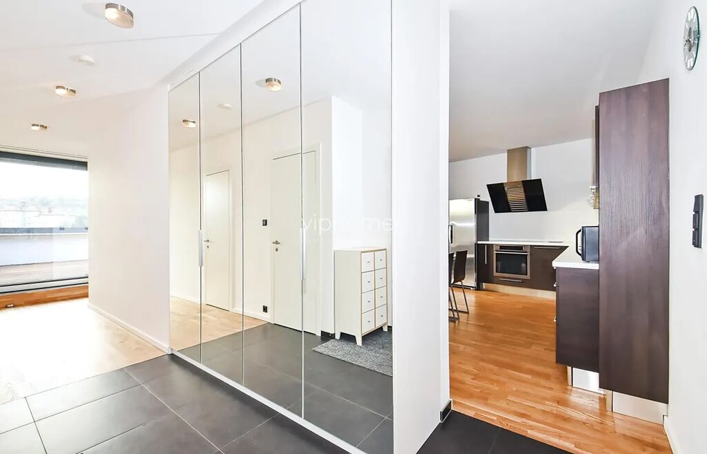 Nabízíme k pronájmu prostorově nadstandardní byt 4+kk, o rozloze 139m2, který se nachází v unikátním rezidenčním projektu z roku 2015. Tato architektonicky výjimečná budova je umístěná v zeleni, ve svahu mezi Malvazinkami a Radlickou ulicí. Rezidenci tvoří dva nezávislé rezidenční bloky propojené elegantní kovovou lávkou s parkem. Oba objekty vytvářejí v jejich centru dvoranu, která je přístupná majitelům i uživatelům bytů. Designové bydlení v kombinaci s perfektní dostupností a občanskou vybaveností.