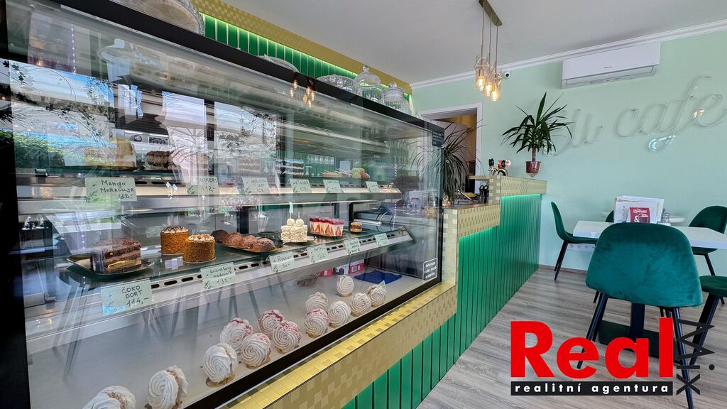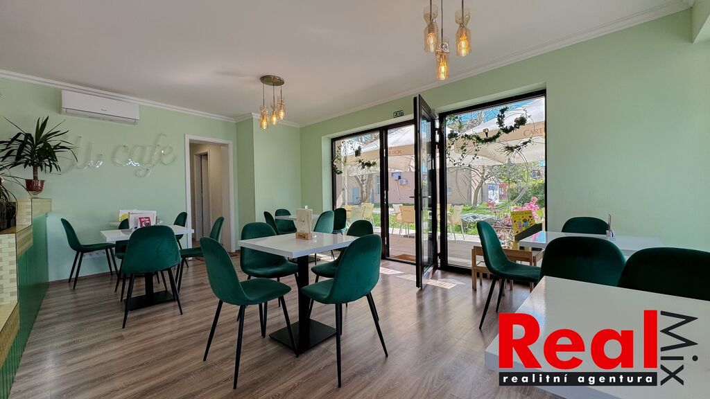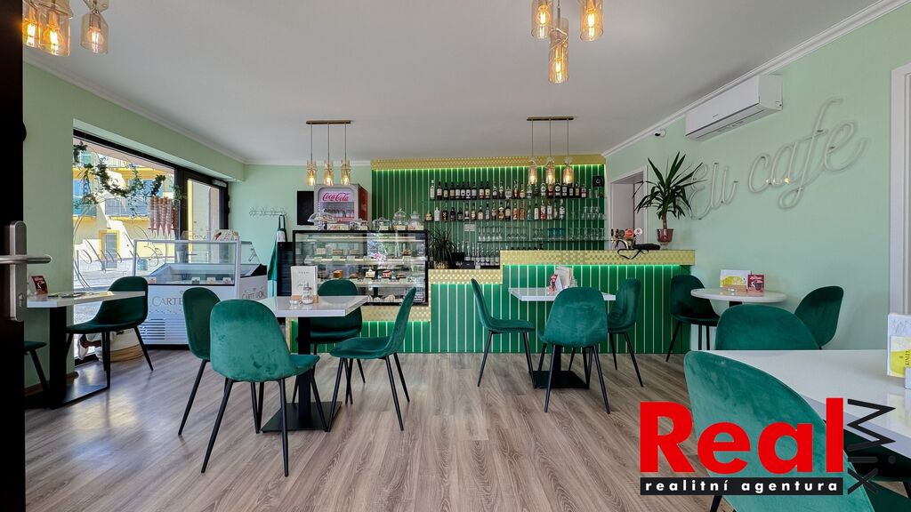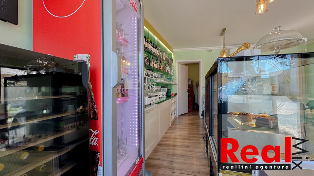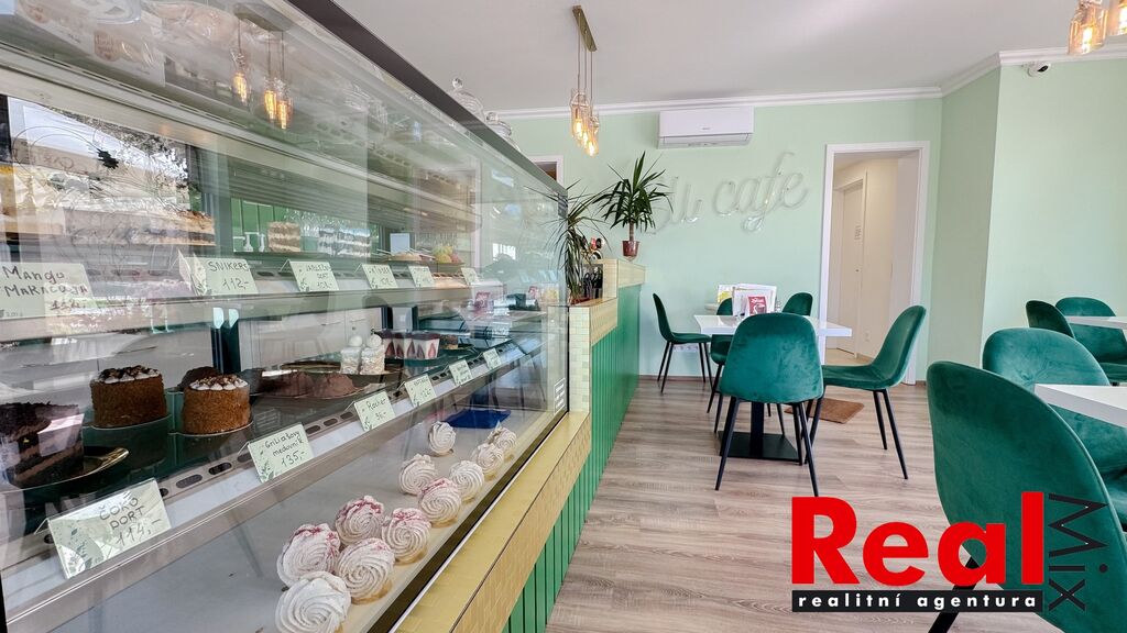 Dispozice: obchodní prostor (kavárna) 36m2, kuchyňka/zázemí 10m2, komora 2,5m2, WC 4m2 Orientace V a J.