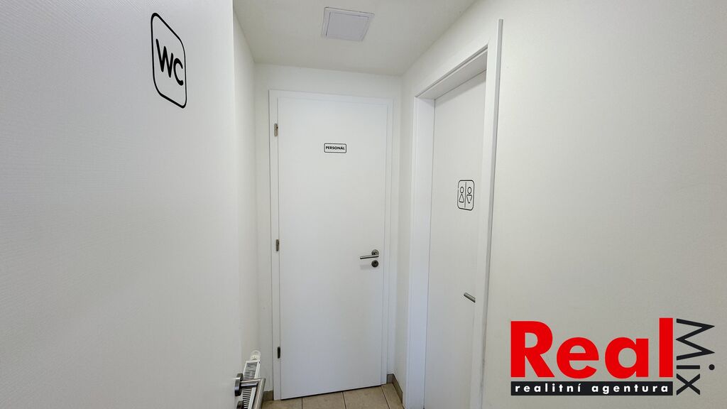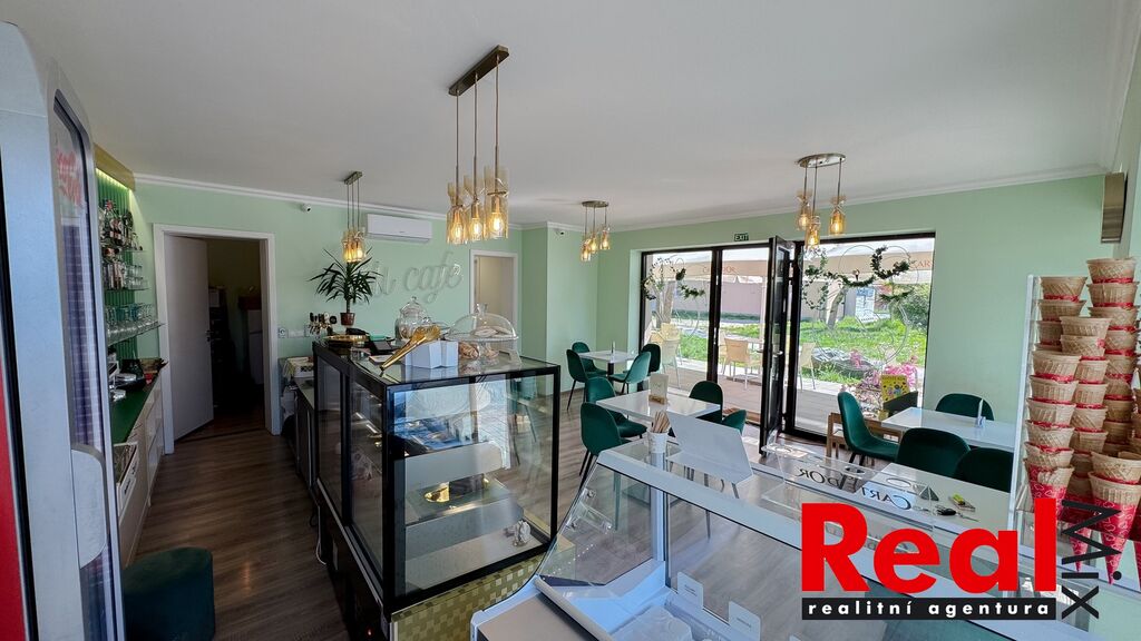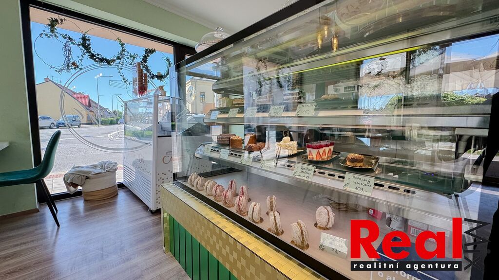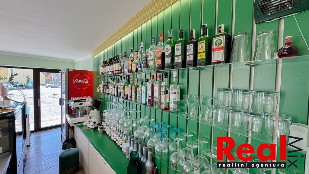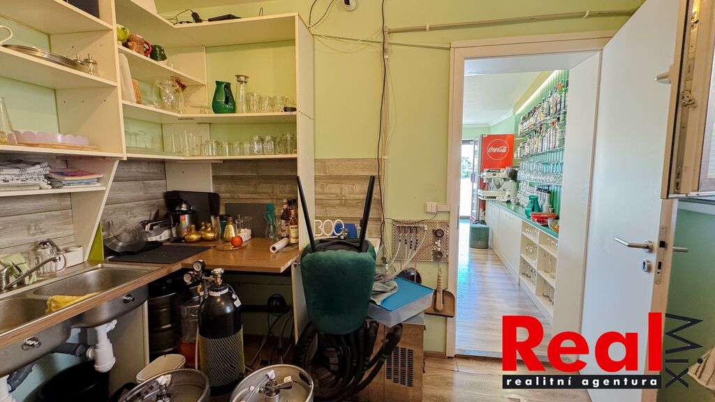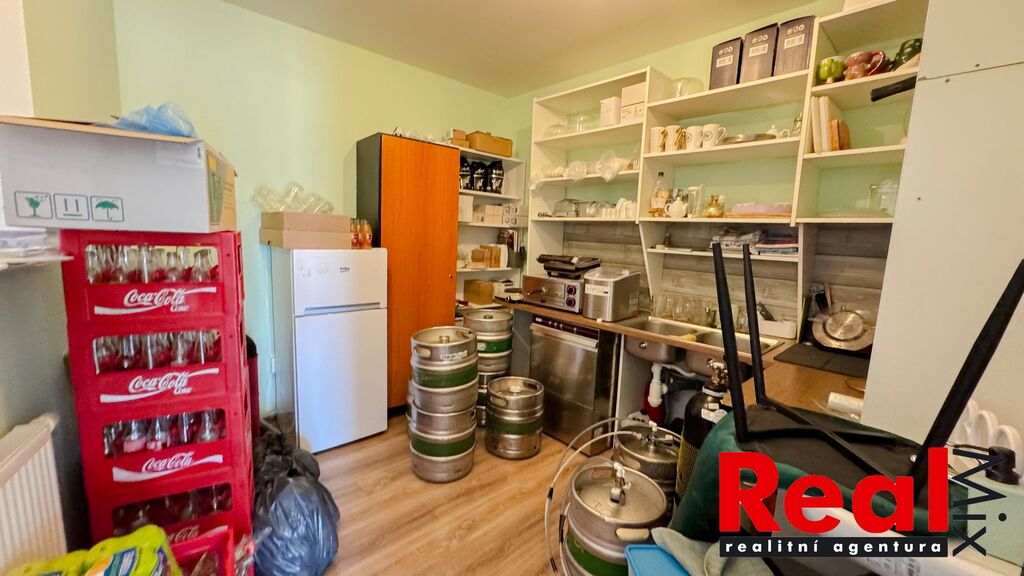 Dispozice: obchodní prostor (kavárna) 36m2, kuchyňka/zázemí 10m2, komora 2,5m2, WC 4m2 Orientace V a J.