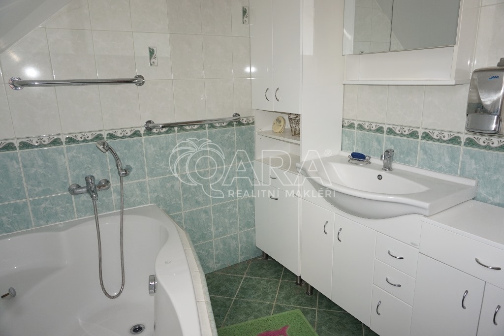 S přáním pěkného dne Vám nabízíme k prodeji rodinný dům 5+kk s garáží, balkónem a zahrádkou v klidné lokalitě Hrochova Týnce. Do domu se vchází přes vstupní předsíň se vstupy do koupelny s WC, kanceláře a dále do prostorného obývacího pokoje propojeného s kuchyní, kde se nachází také samostatná spíž, schodiště do patra domu, výstup na zahradu a v neposlední řadě kachlová krbová kamna. V patře domu jsou celkem tři obytné pokoje, koupelna, WC. Pokoj umístěný východním směrem má vlastní samostatnou šatnu a také balkón. Vše ve výborném stavu, nabízeno včetně vybavení. Vedle domu navazuje garáž, která má vstup také ze zahrady. Pozemek kolem domu je rovinatý, osázený ovocnými stromy, záhony a z velké části též zatravněný. Technicky se jedná o velmi precizně provedenou stavbu z bloků Heluz, která je zateplena. V domě je od listopadu 2025 nainstalovaný nový plynový kondenzační kotel Bosch, který je umístěný v horním WC, případně je možné vytápět též krbovými kamny umístěnými v hlavní obytné místnosti v přízemí. Výhodou domu je, že je celý napojený na vodu z vlastní studny a také na městský vodovod. V rámci úspory se používá voda z městského vodovodu v kuchyni a v koupelnách a na WC ze studny. Celkově se jedná o objekt ve stavu novostavby ve velmi příjemné čtvrti rodinných domů s velmi mírným dopravním provozem vhodný k okamžitému bydlení či kombinaci s podnikáním. Možnost financovat hypotečním úvěrem, se kterým Vám velice rádi pomůžeme.