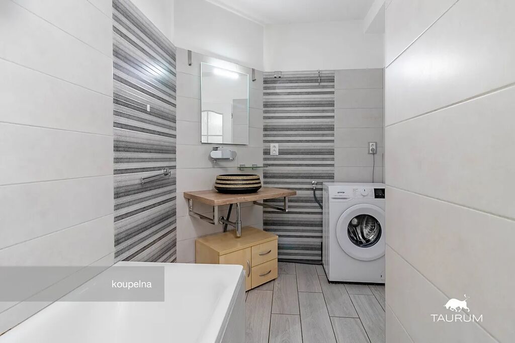 Byt se pronajímá částečně vybavený dle fotografií – k dispozici je kuchyňská linka se spotřebiči, pračka, postel, pohodlný gauč, dvě křesla s podnožkou, velké vestavěné skříně a další vybavení ve velmi dobrém stavu. Vytápění i ohřev vody zajišťuje vlastní plynový kotel, což umožňuje plnou kontrolu nad spotřebou a náklady.